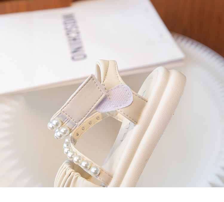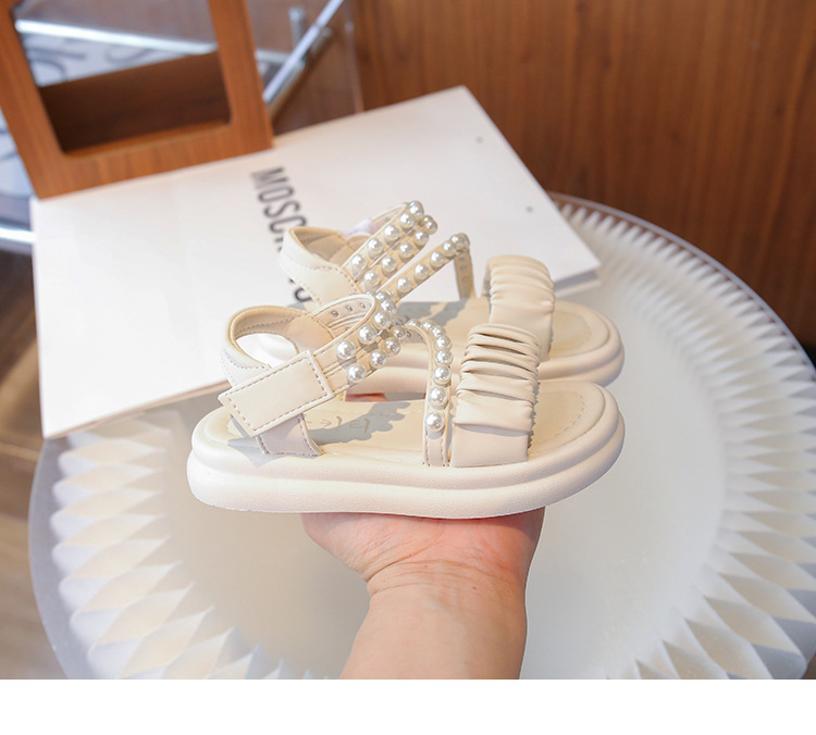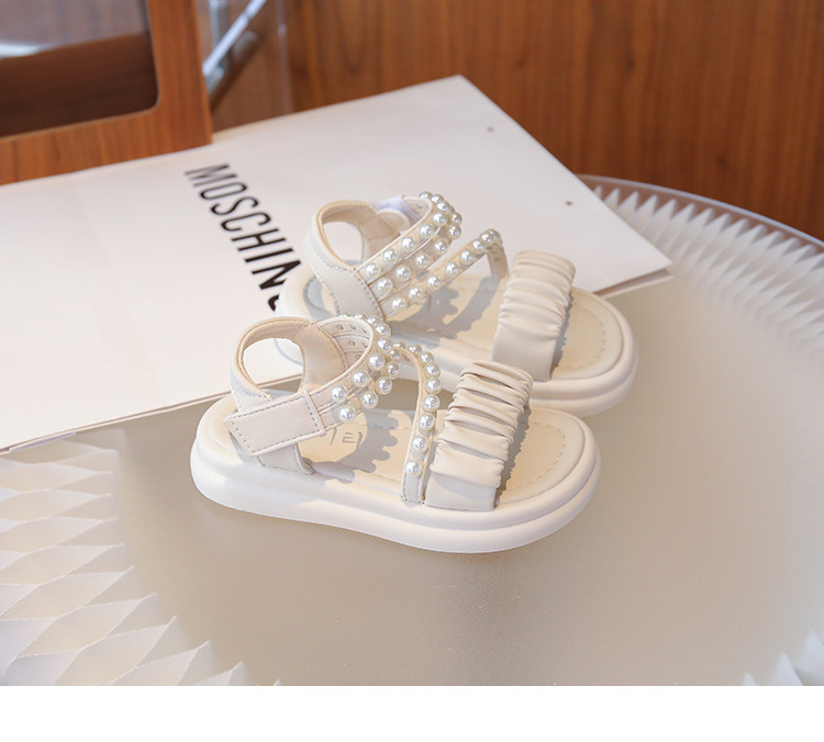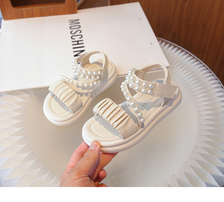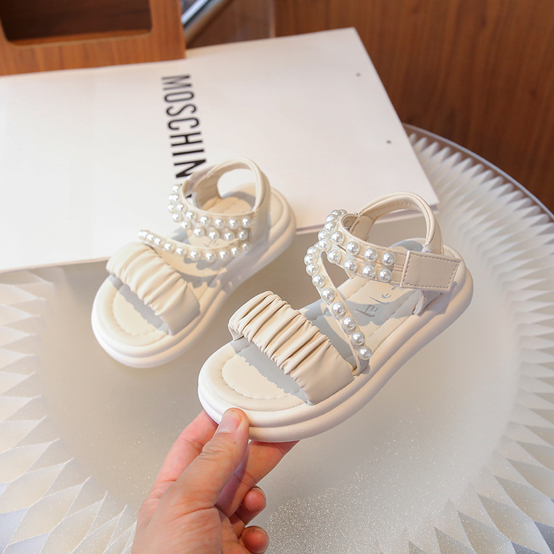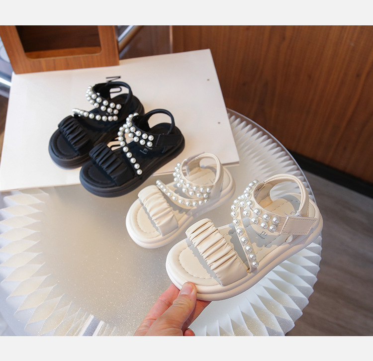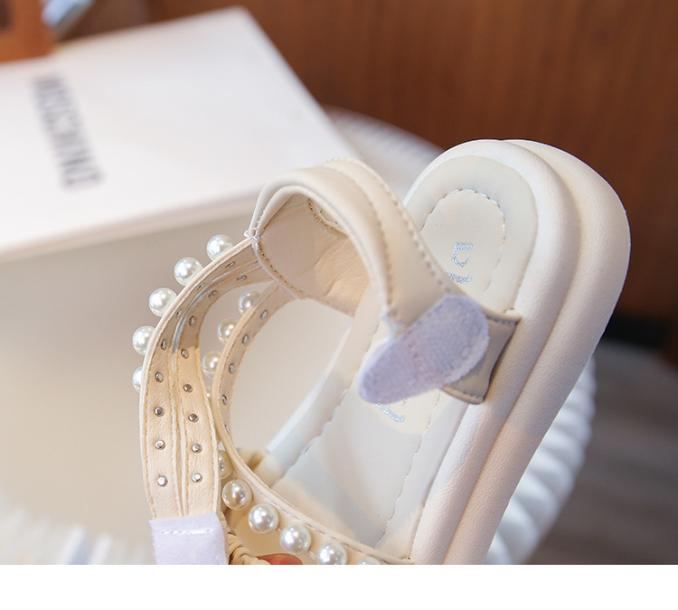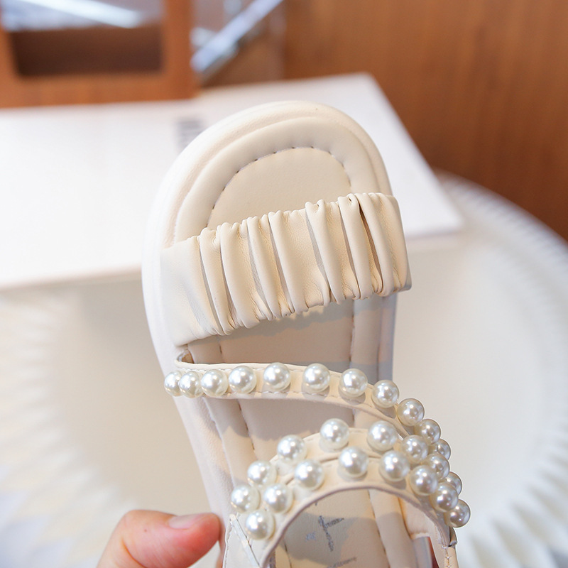 Детские сандалии 2025 Лето Новые для девочек с жемчужной мягкой подошвой Модные туфли принцессы Корейский стиль Антискользящие пляжные туфли Дропшиппинг