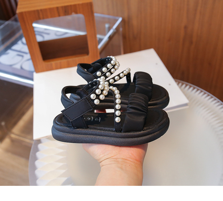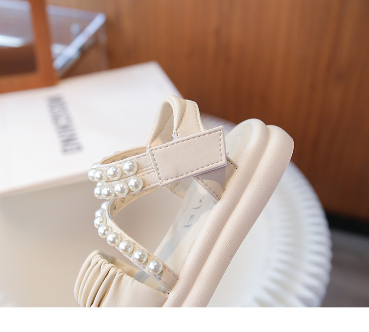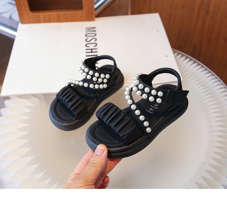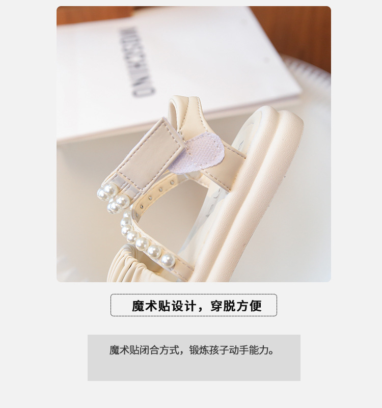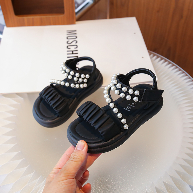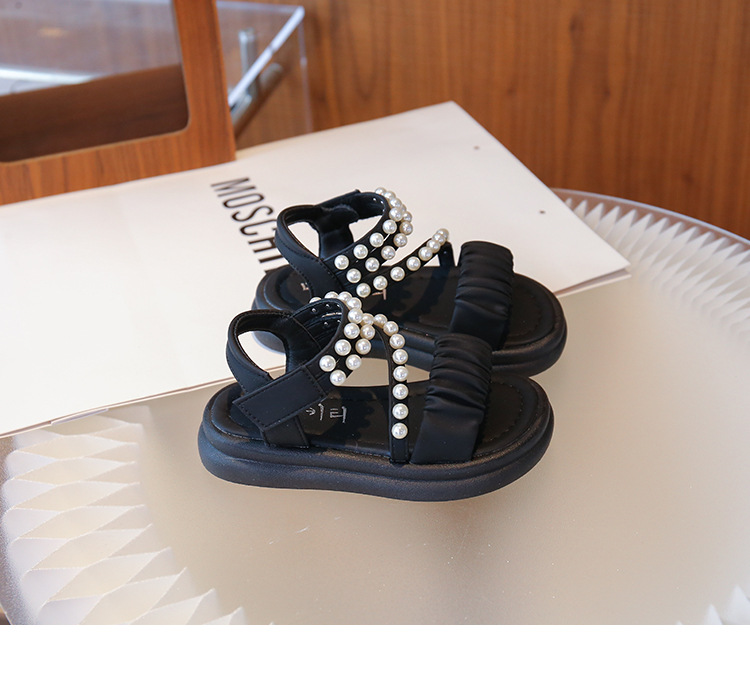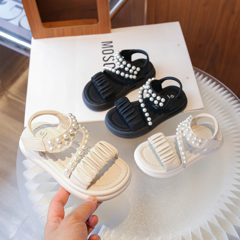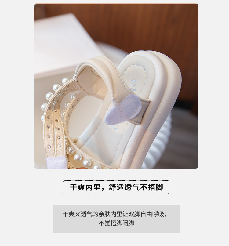 Детские сандалии 2025 Лето Новые для девочек с жемчужной мягкой подошвой Модные туфли принцессы Корейский стиль Антискользящие пляжные туфли Дропшиппинг