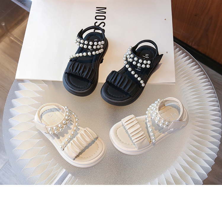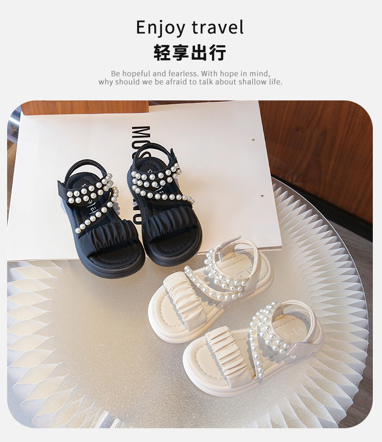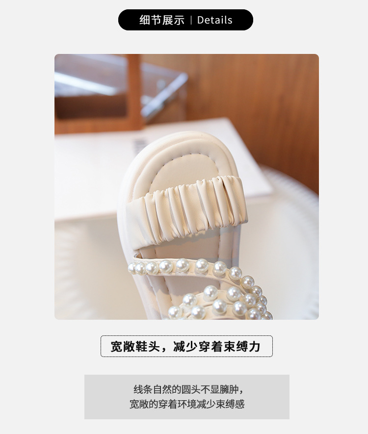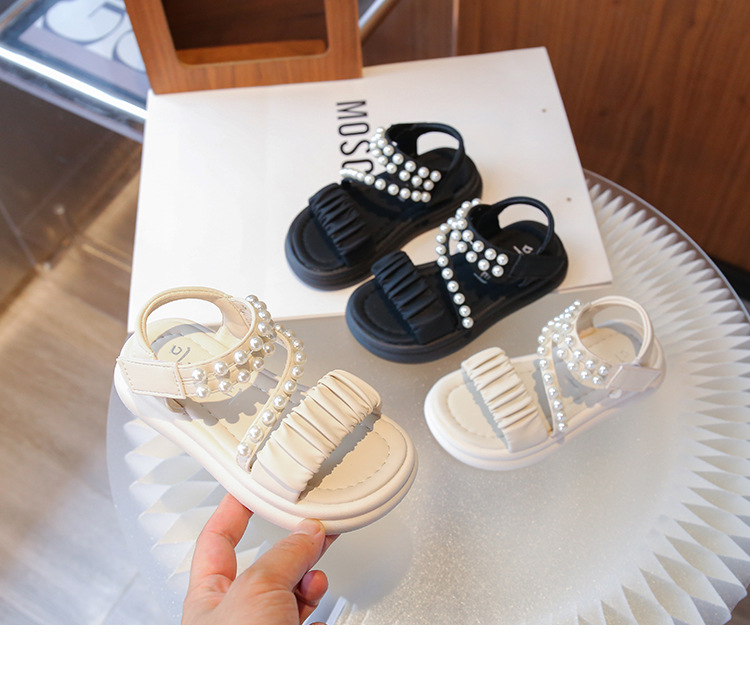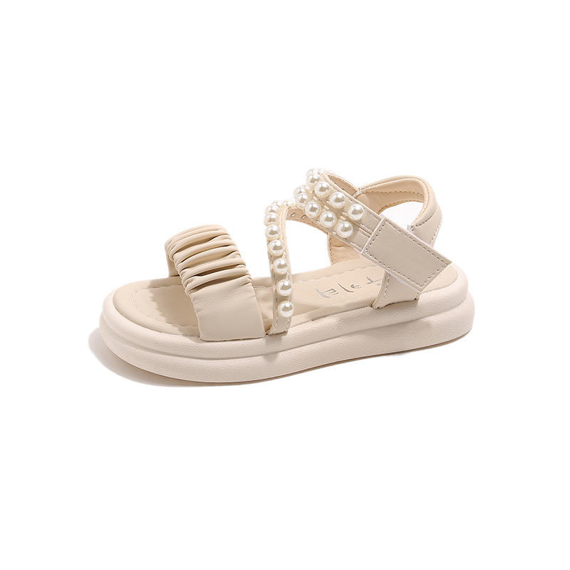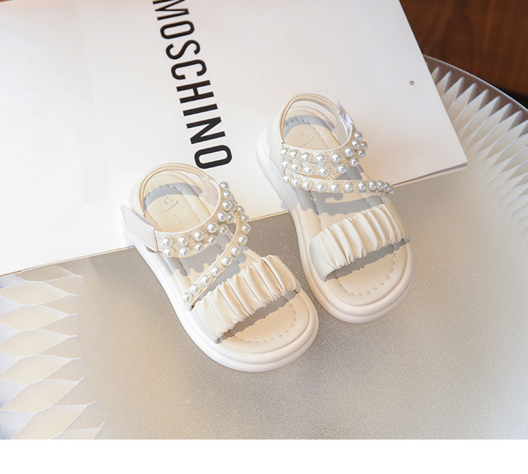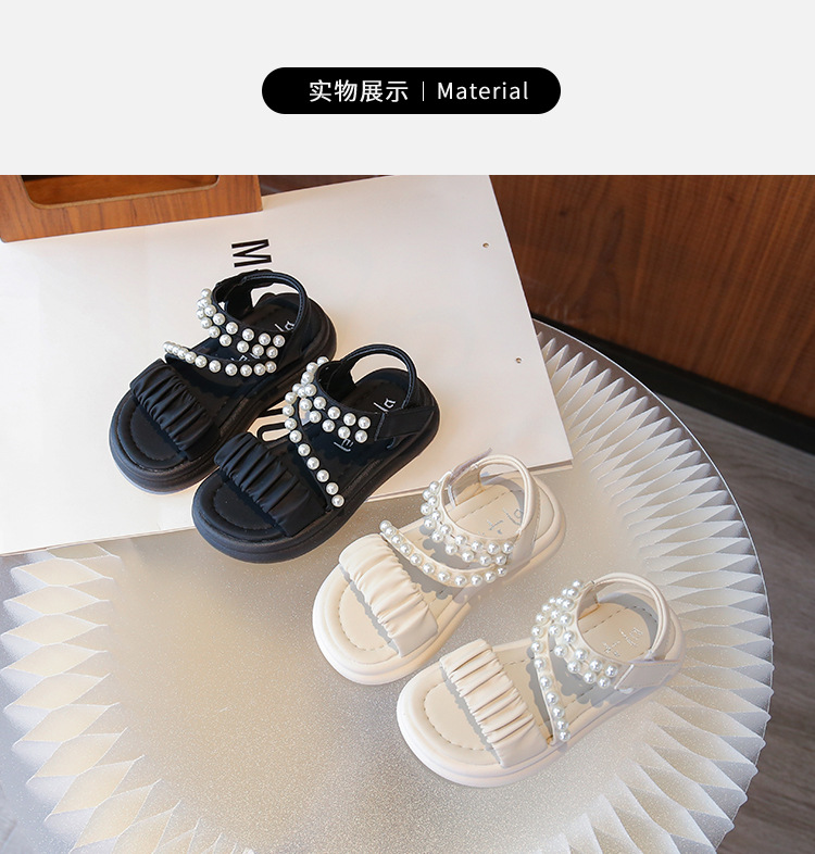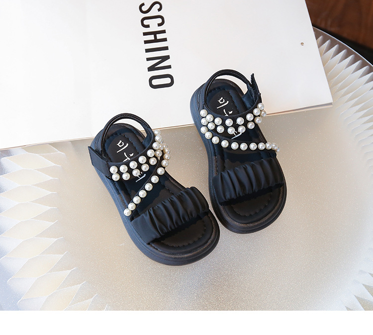 Детские сандалии 2025 Лето Новые для девочек с жемчужной мягкой подошвой Модные туфли принцессы Корейский стиль Антискользящие пляжные туфли Дропшиппинг