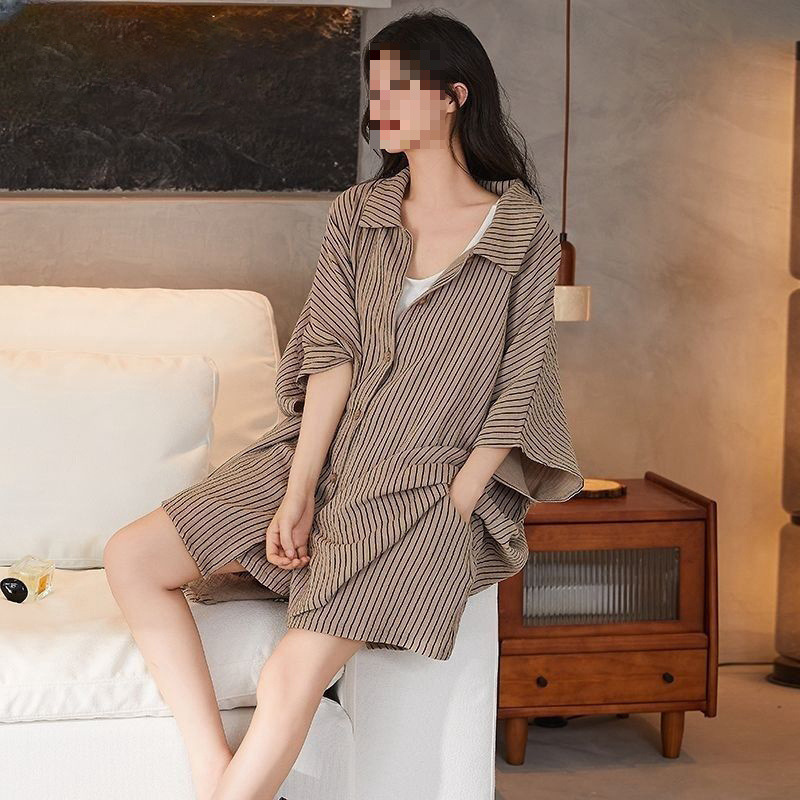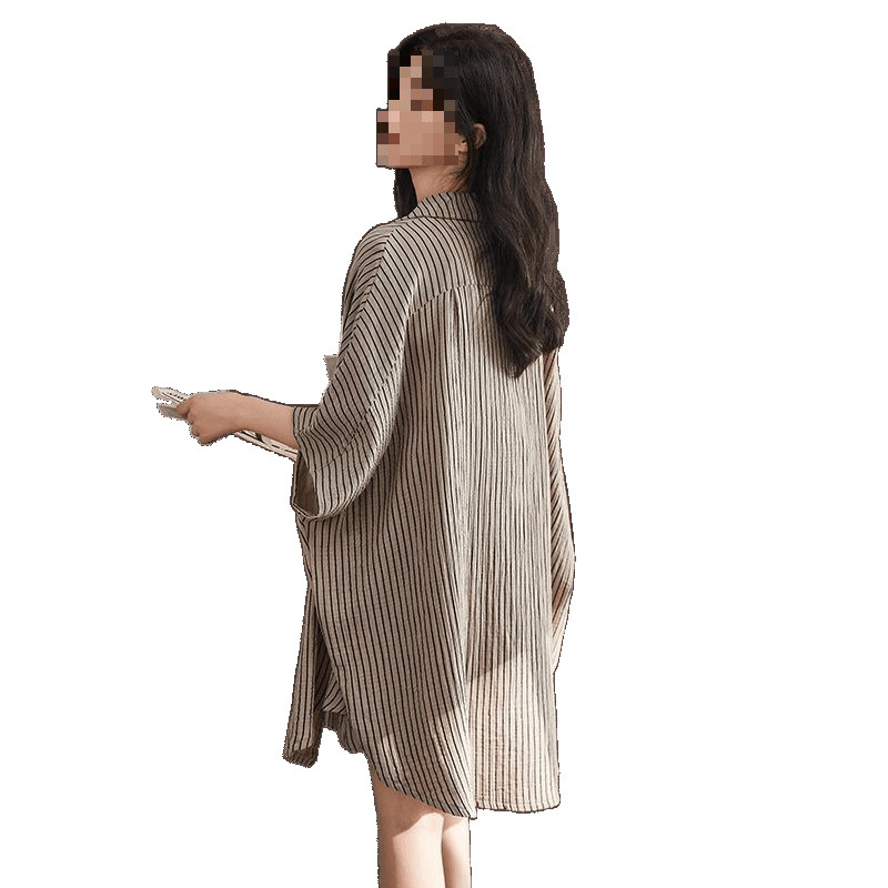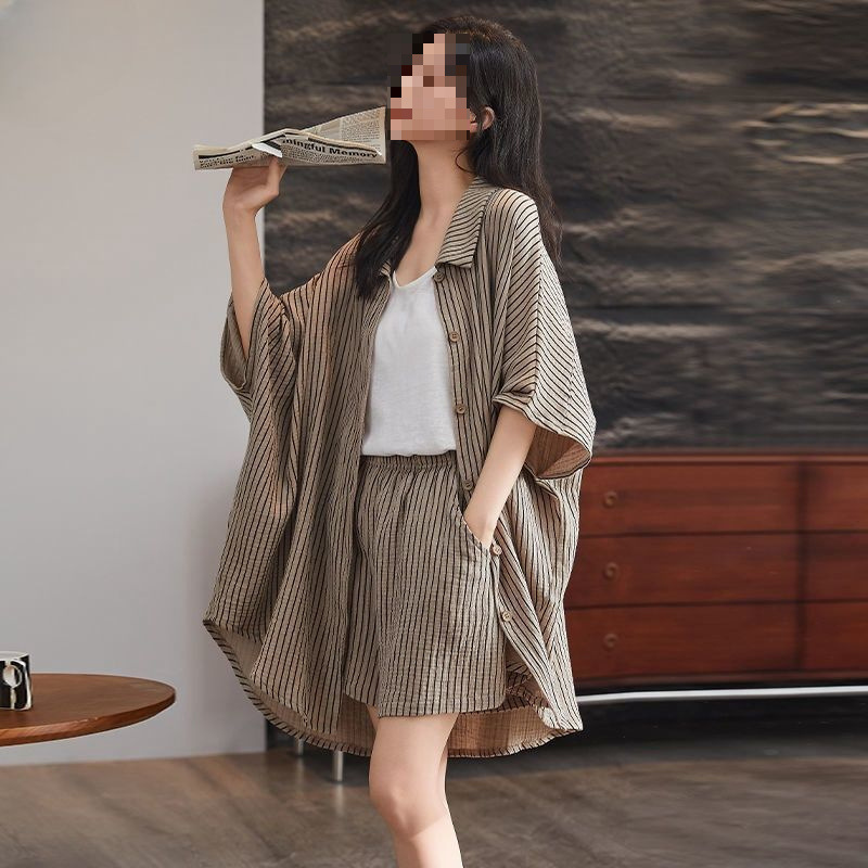 Новый летний стиль пустыни, новый китайский модный женский комплект рубашек больших размеров с карманами, широкие полоски, подходит для полных женщин