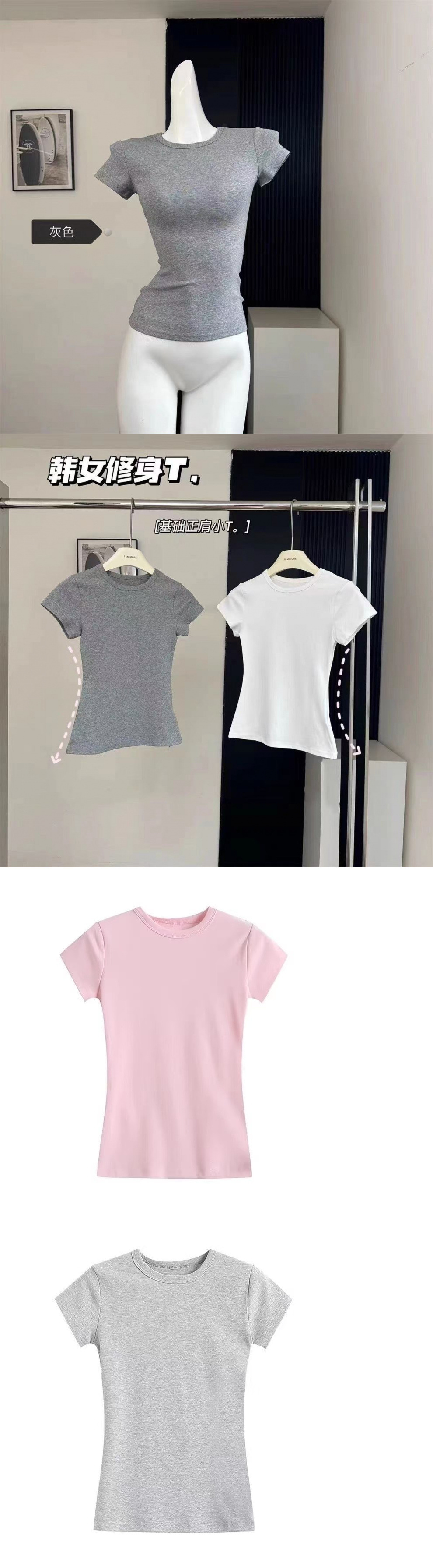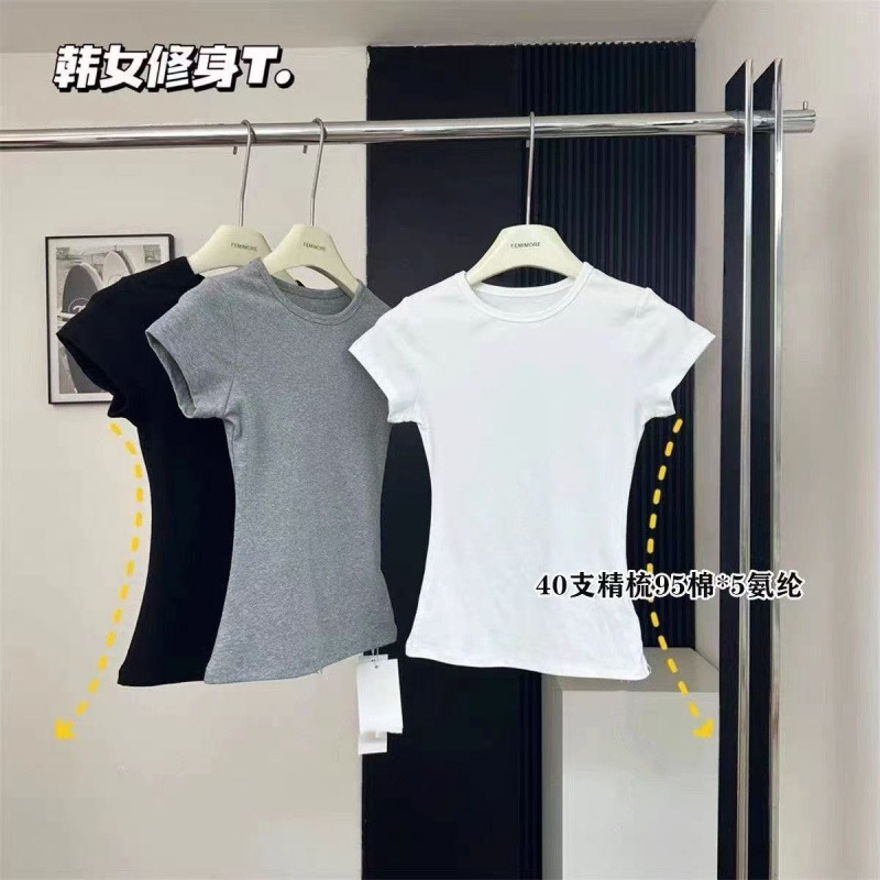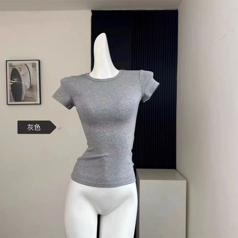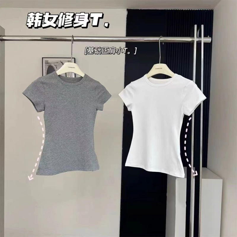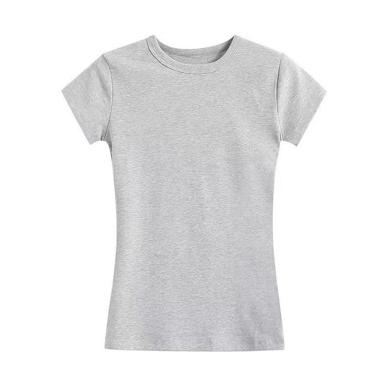 Серая футболка из чистого хлопка с правым плечом и круглым вырезом, с короткими рукавами, женская летняя новая популярная рубашка с утягивающим эффектом, топ
