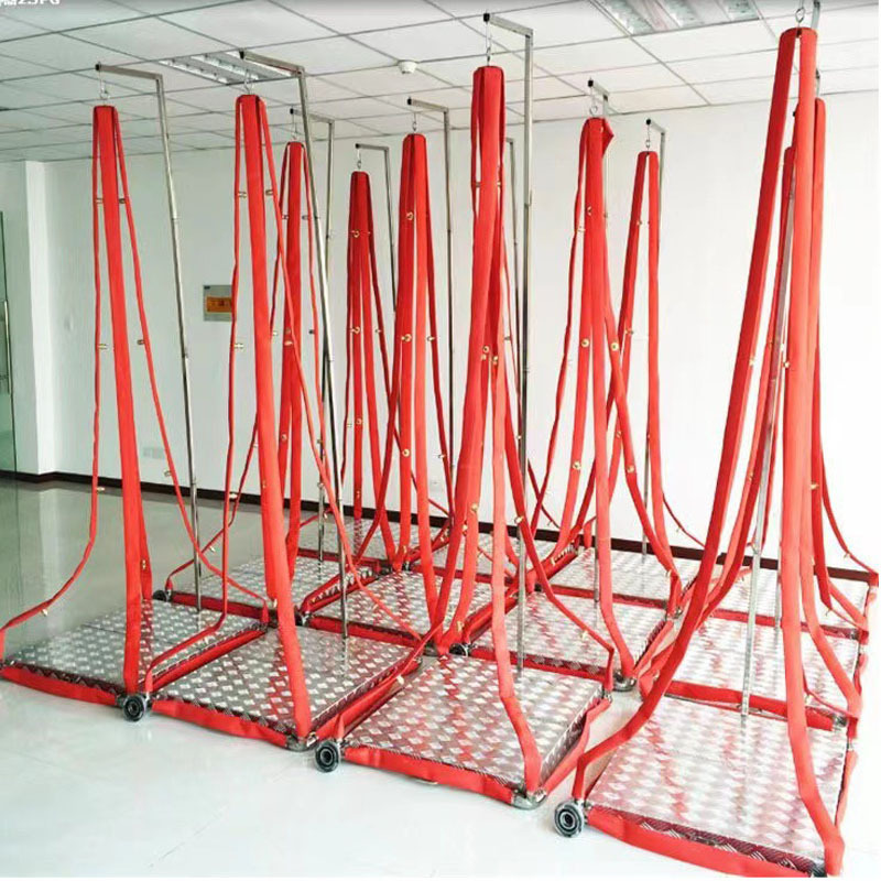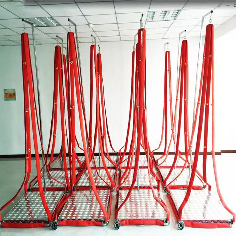 2、将管路挂钩取下,先将支撑杆分节取下,箱子翻转放平,按顺序放入