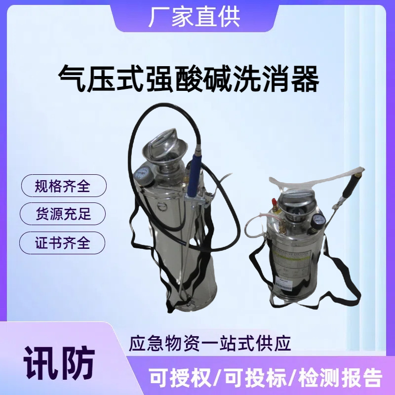 10升气压式强酸碱洗消器配合洗消剂或洗消液对人体皮肤或物体、环境进行有效的洗消作业.
