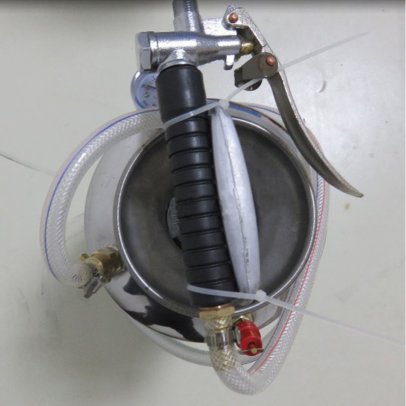 Устройство для экстренной дезактивации. Бутылка из нержавеющей стали емкостью 10 л. Устройство для дезактивации сильных кислот и щелочей под давлением воздуха. Экстренное чистящее средство. Экстренный ополаскиватель.