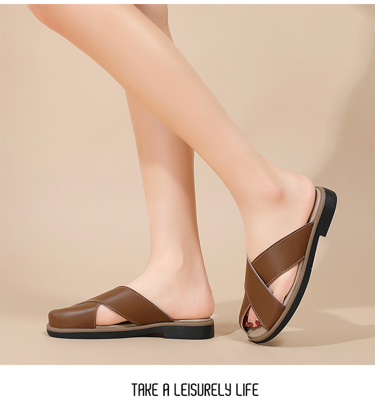 2025 новые летние сандалии для верхней одежды для женщин, модные женские тапочки в стиле ретро, нескользящая мягкая подошва, удобная женская обувь из натуральной кожи.
