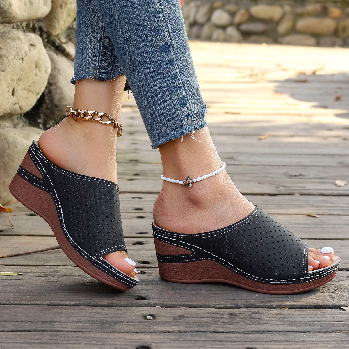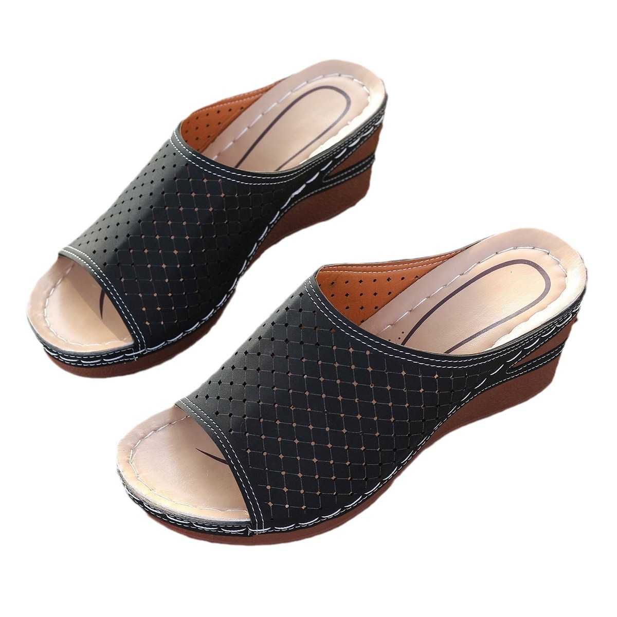 Европейские и американские женские сандалии, туфли на танкетке большого размера, новые летние женские туфли с лазерной полостью «рыбий рот», женские тапочки для трансграничной торговли, внешняя торговля.