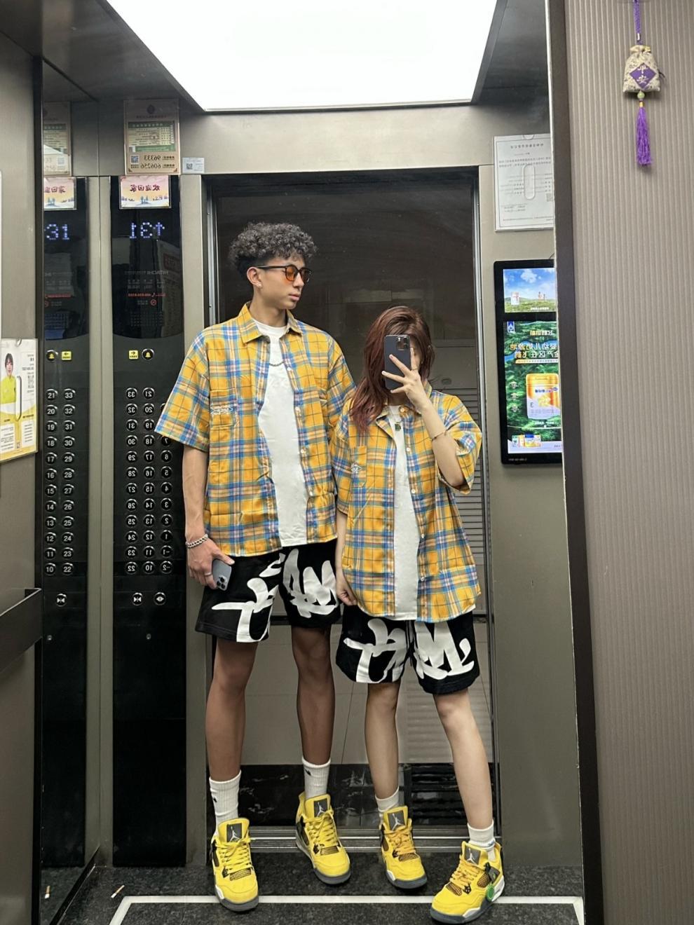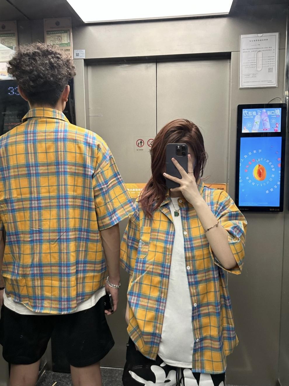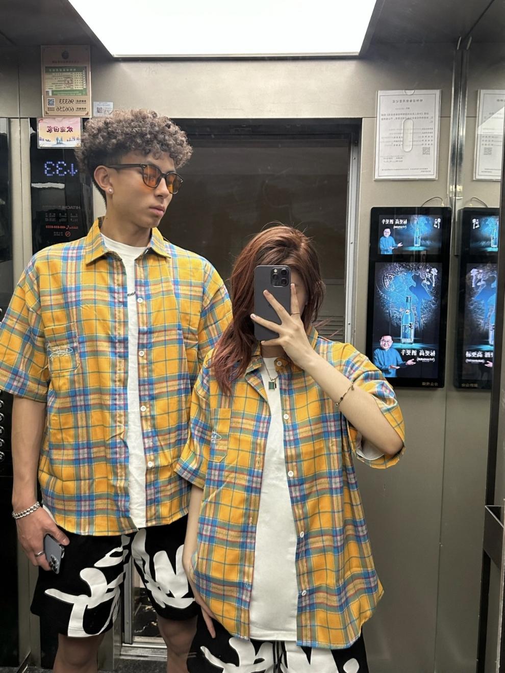 Оригинальная ткань, желтая клетчатая летняя рубашка с короткими рукавами, свободная повседневная куртка в стиле бойфренда, модный бренд