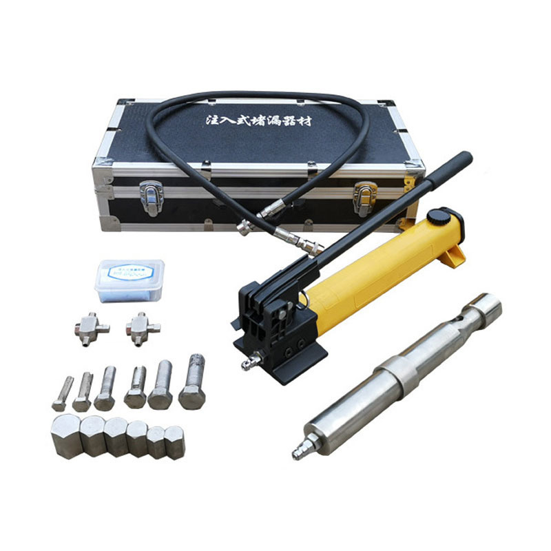 1、注入式堵漏工具 由以下几个部分组成:手动泵、注胶枪、液压油管、旋塞阀、各种不同类型的注胶接头。
