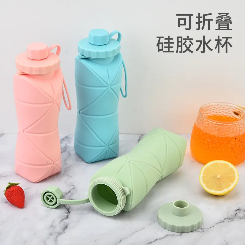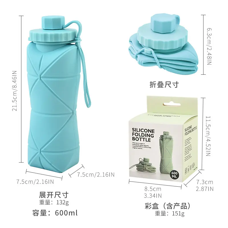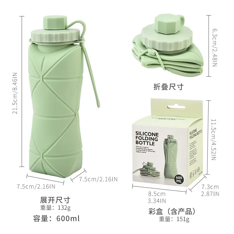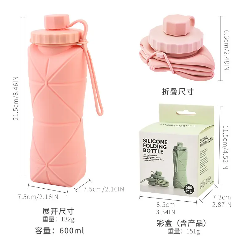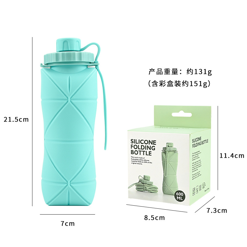 Силиконовая складная чашка для воды, 600 мл, большая емкость, для путешествий на открытом воздухе, для спорта, портативная силиконовая, устойчивая к высоким температурам, пищевая складная чашка