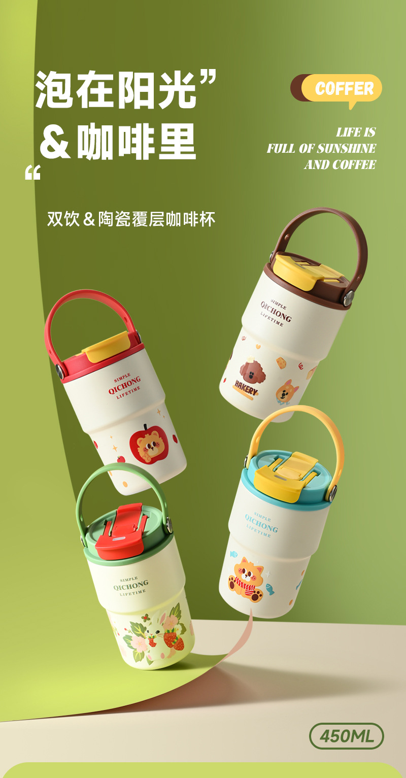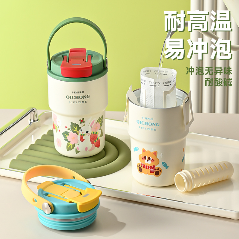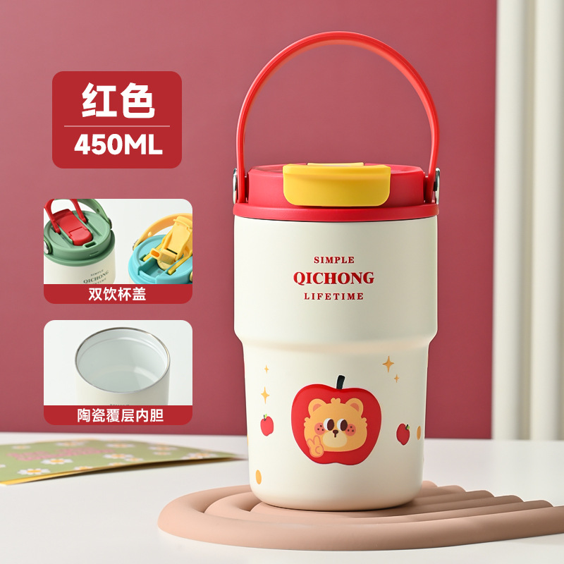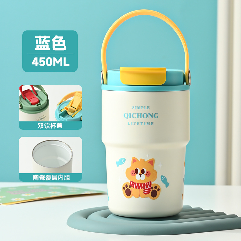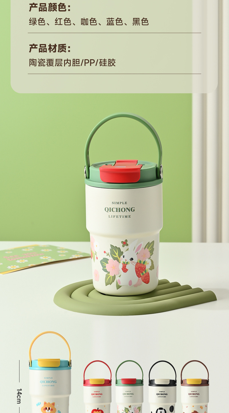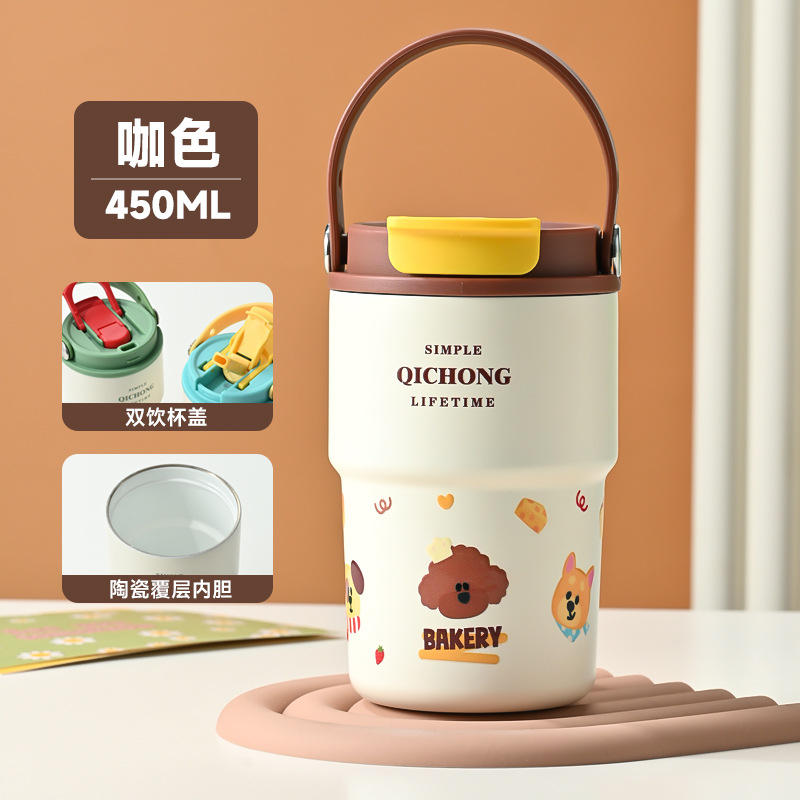 Керамическая термокружка-термос с двойными стенками, портативная, для студентов (мужчин и женщин), стильная, с ручкой, мультяшная, милая.