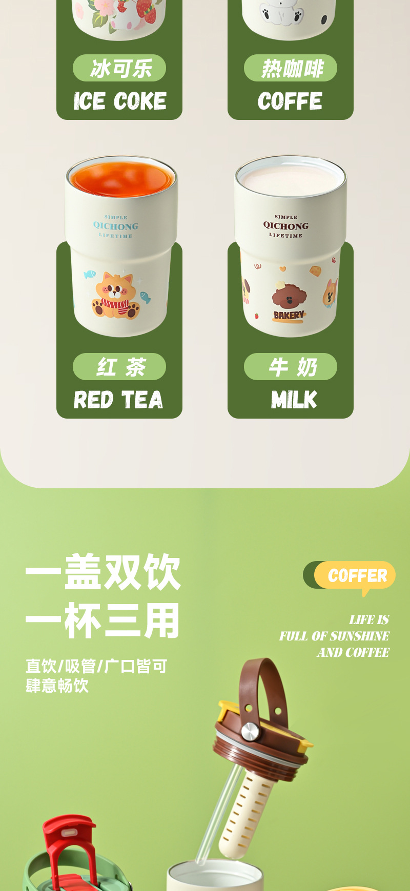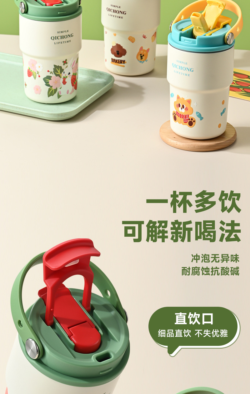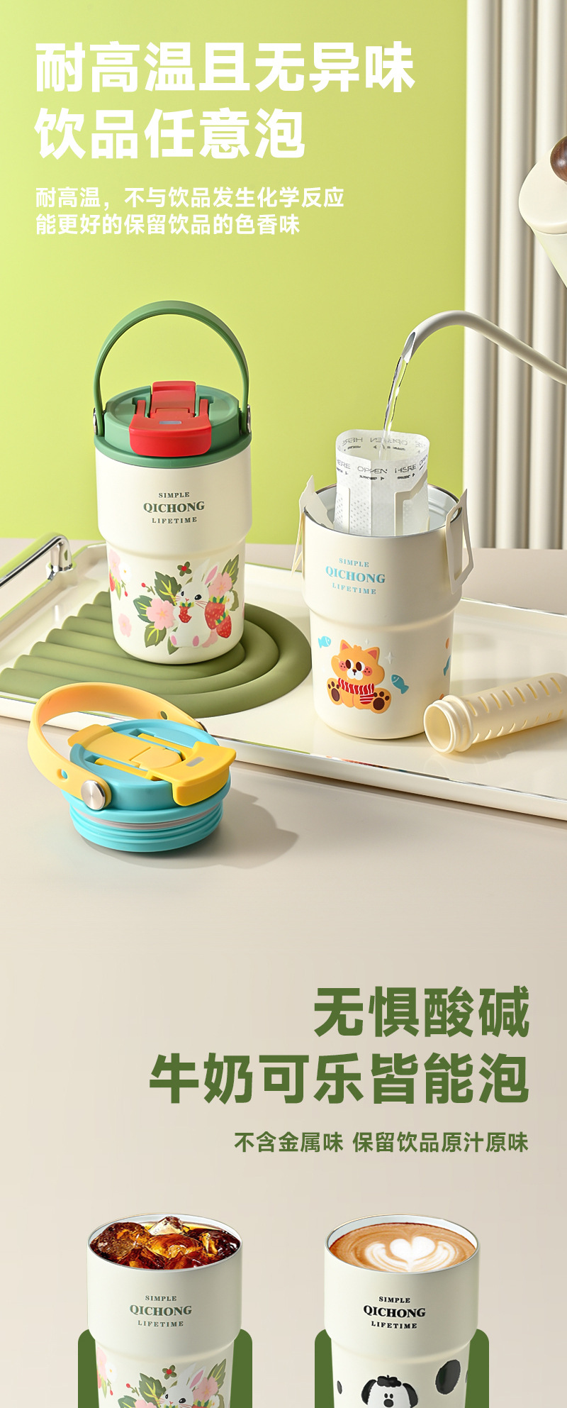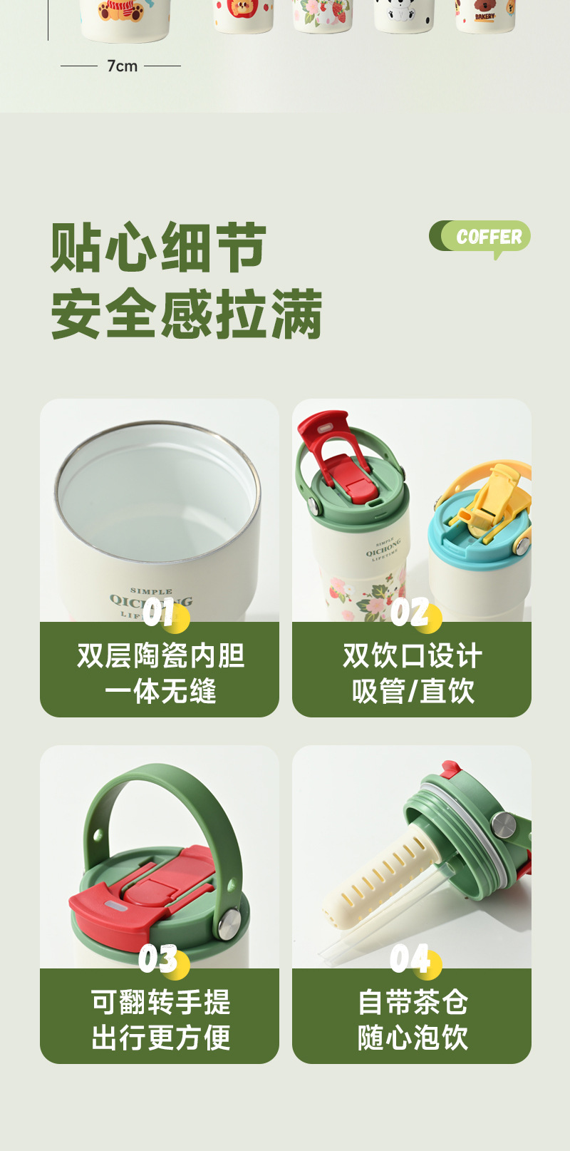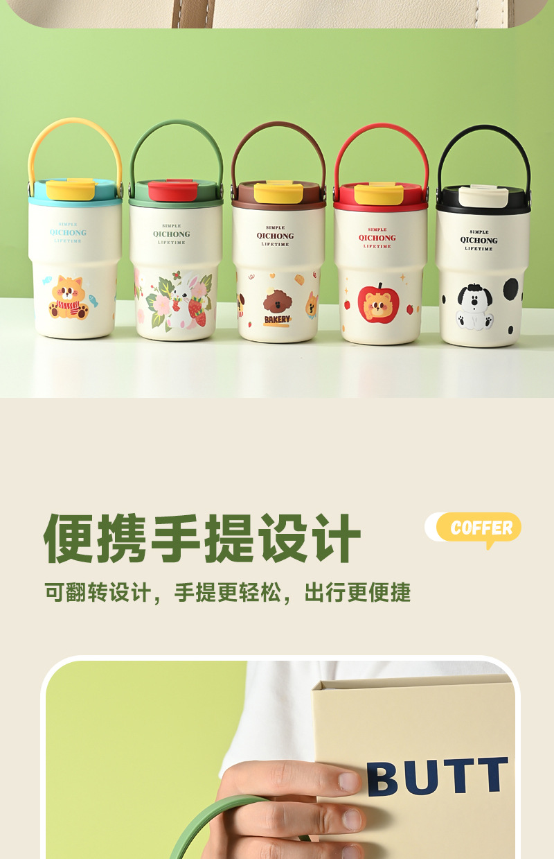 Керамическая термокружка-термос с двойными стенками, портативная, для студентов (мужчин и женщин), стильная, с ручкой, мультяшная, милая.