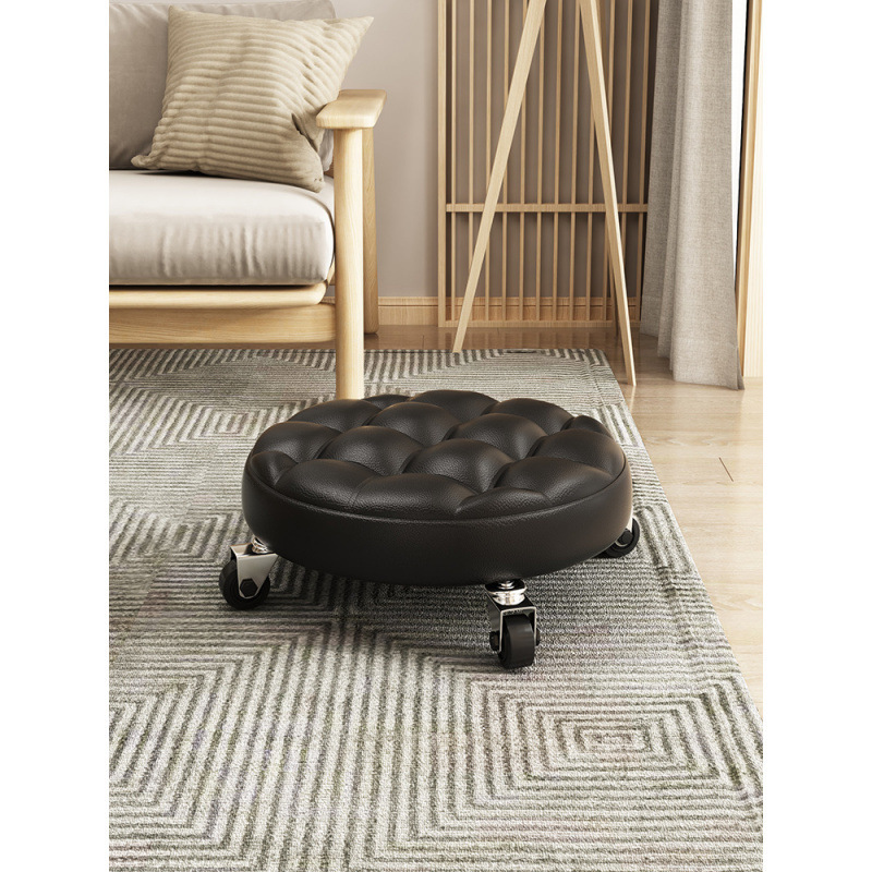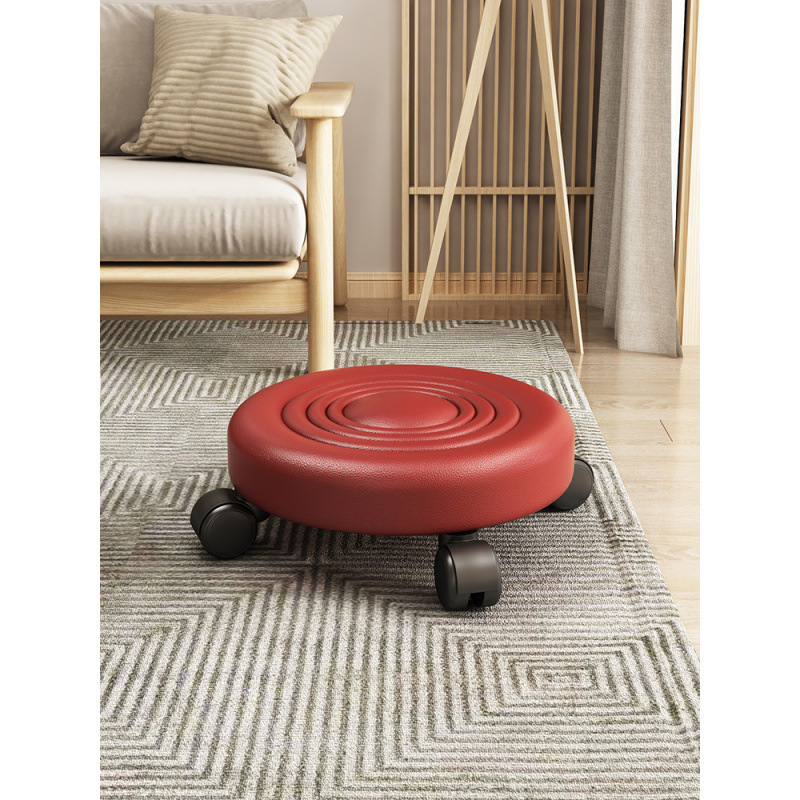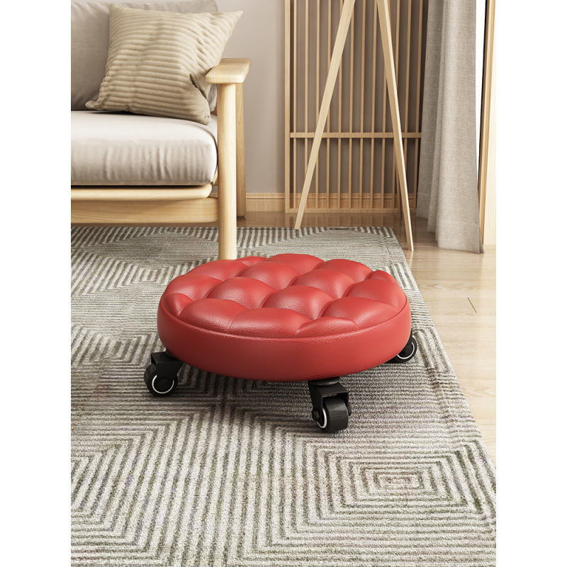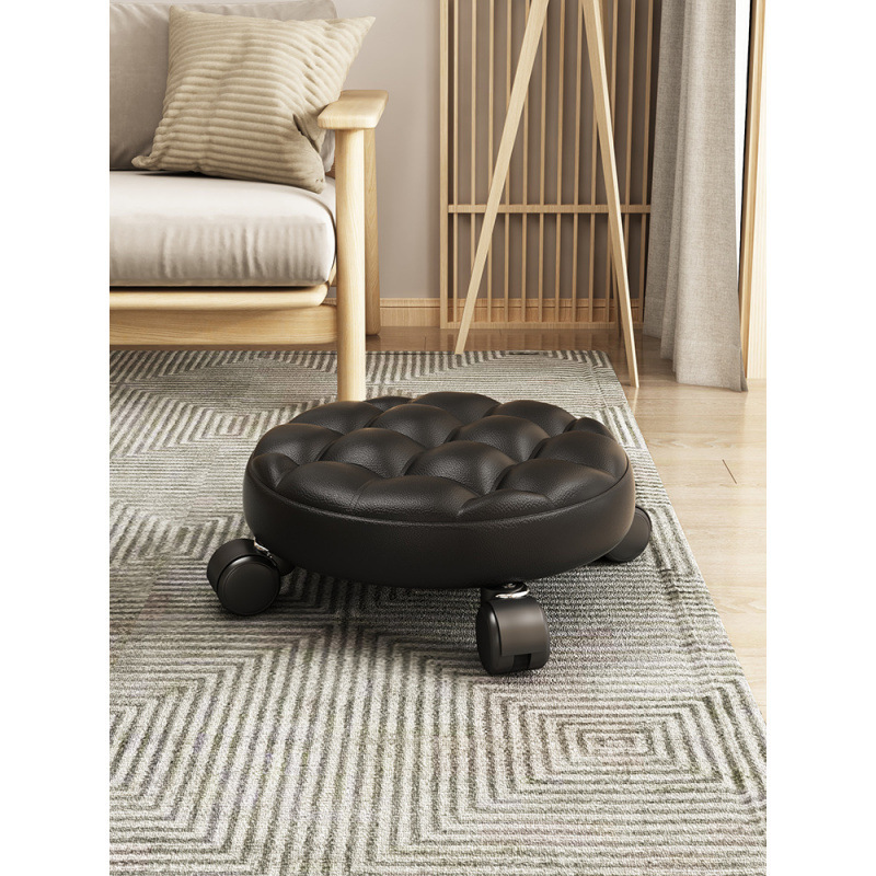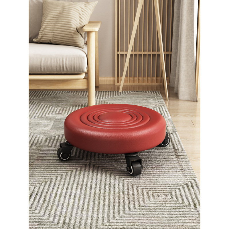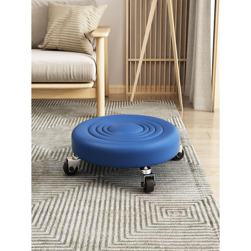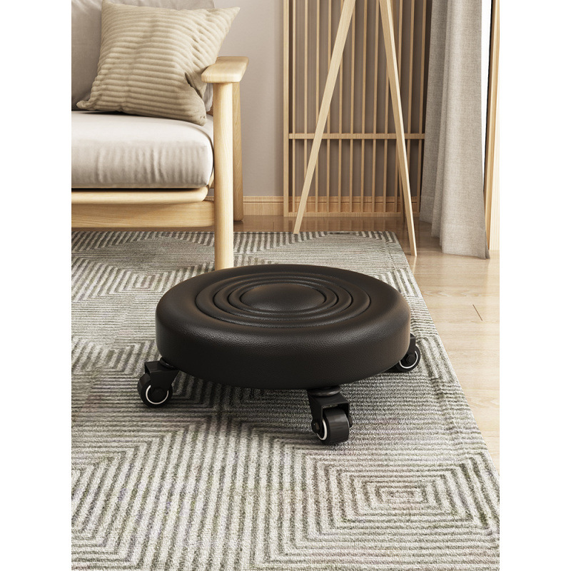 Табурет на колесах для домашнего использования, поворотный низкий табурет на сверхнизких колесах, маленькая скамейка, подвижная, специально для бесшовной красоты, желтый.