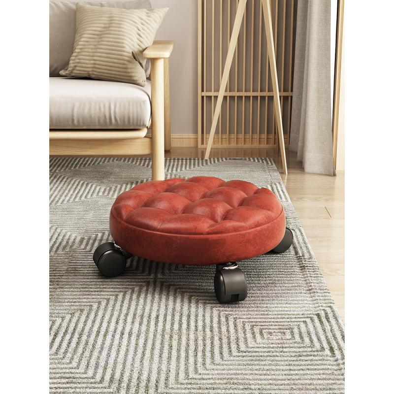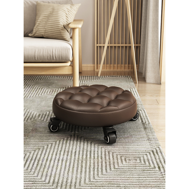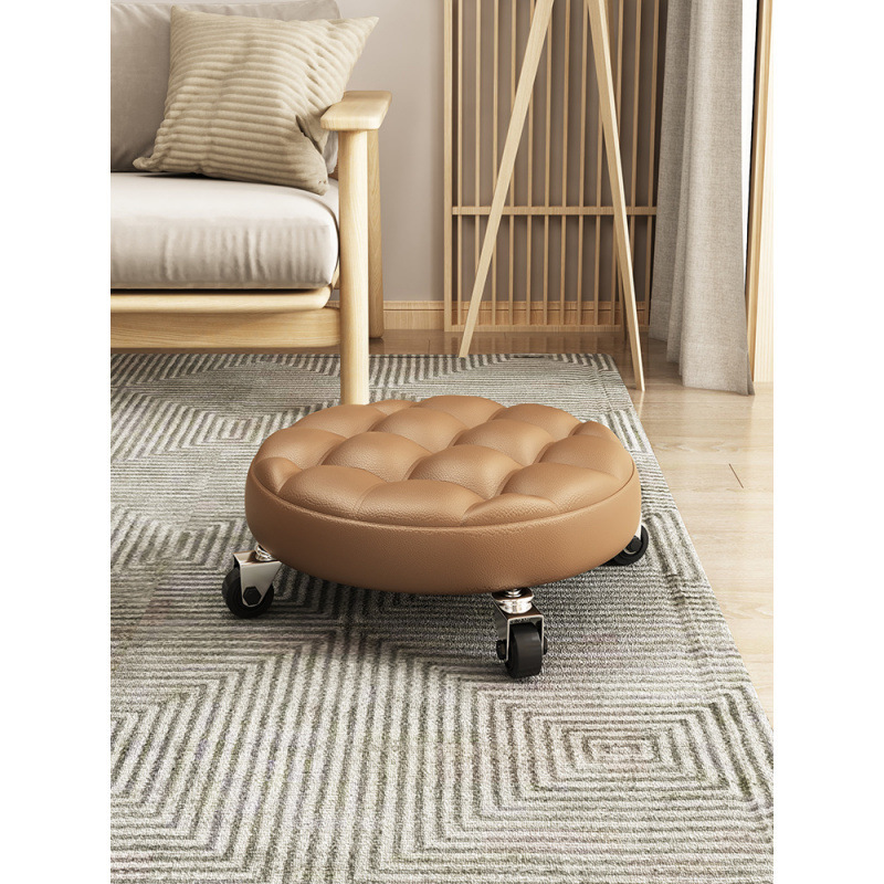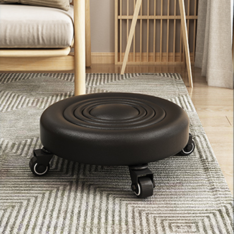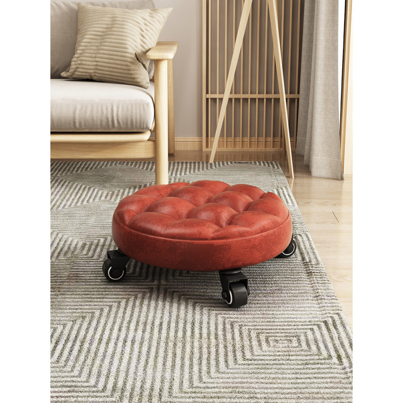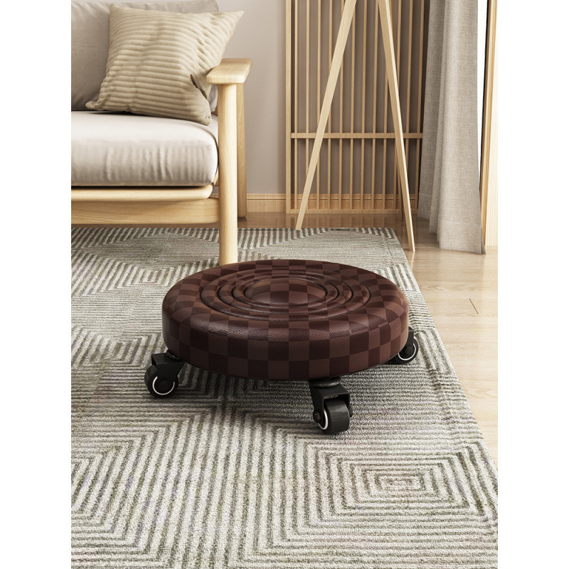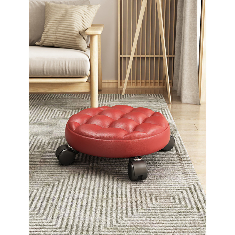 Табурет на колесах для домашнего использования, поворотный низкий табурет на сверхнизких колесах, маленькая скамейка, подвижная, специально для бесшовной красоты, желтый.
