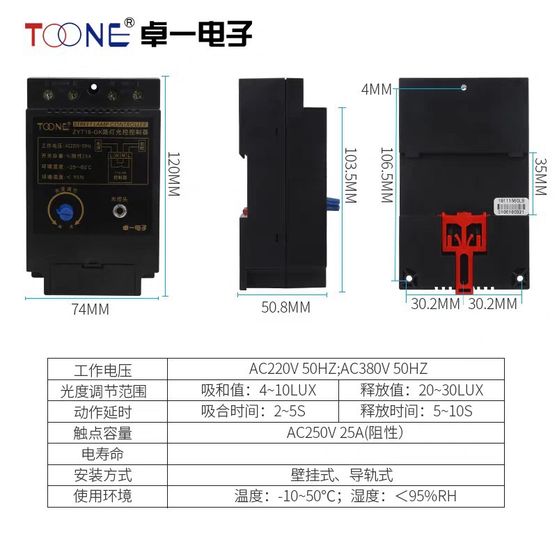 Zhuoyi ZYT16-GK переключатель управления освещением контроллер уличного освещения полностью автоматический переключатель AC220V/50HZ + датчик освещенности