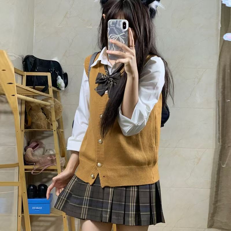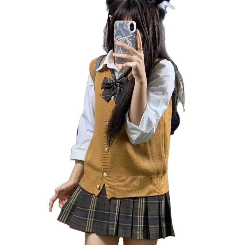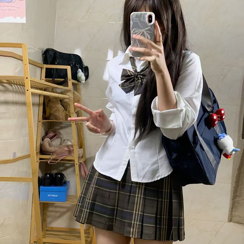 [Зимний каштан] August Letter JK Оригинальная аутентичная униформа Плиссированная юбка College JK Клетчатая юбка Школьные принадлежности Короткая юбка Slim Fit Многослойная