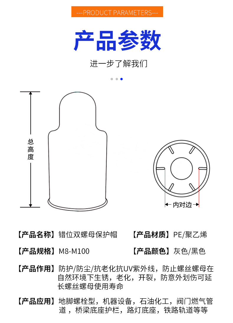 Пластиковая неправильно расположенная двойная гайка, антикоррозийная защитная крышка, защитный чехол для болта фундамента, защитная крышка гайки, шестиугольная крышка винта