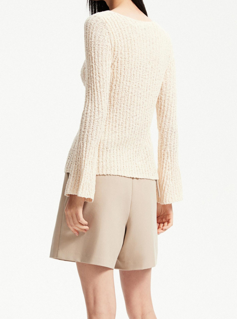 Весенний тонкий женский трикотаж с низким круглым вырезом и рукавами-колокольчиками, вязаный трикотаж Dalang, производство и обработка, см. рисунок
