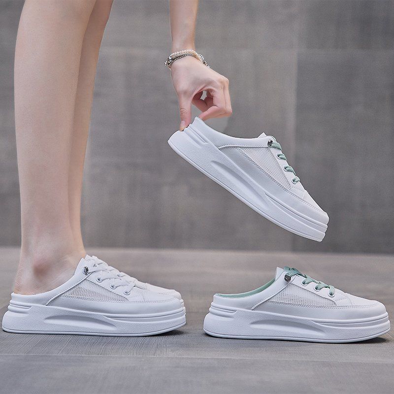 Женские полуботинки Баотоу, весна-лето 2025, новая модель, мягкая резиновая подошва, шнуровка, сетчатая дышащая легкая обувь