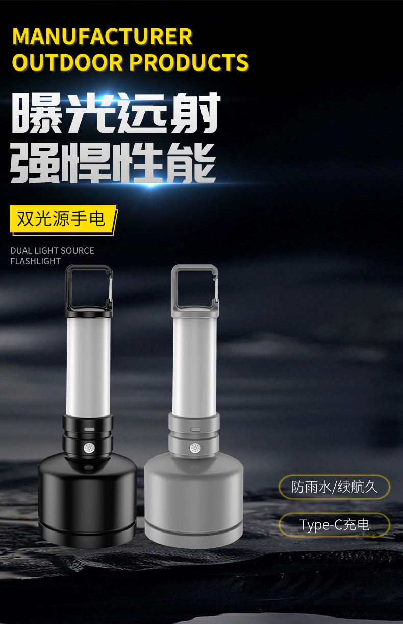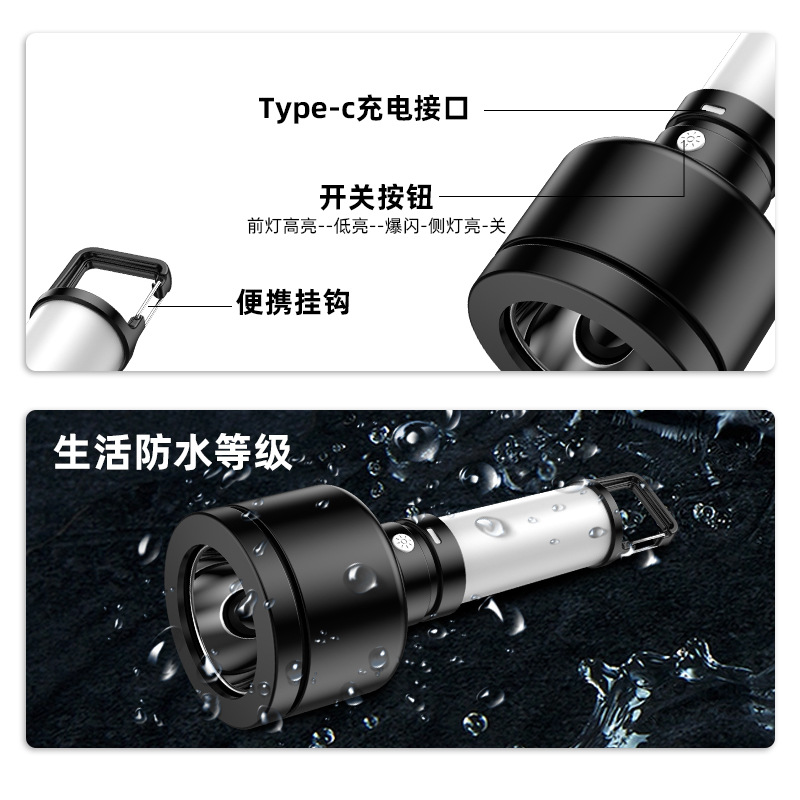 Фонарик Type-C перезаряжаемый портативный долговечный фонарик аварийное освещение патрульный светильник уличный водонепроницаемый светильник в стиле кемпинга