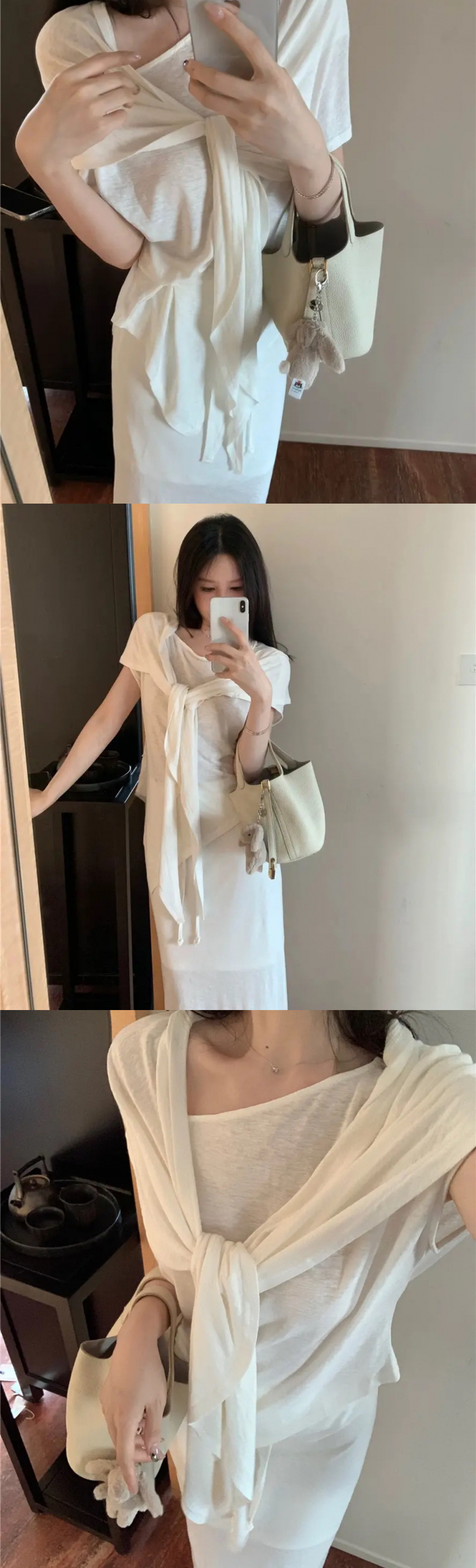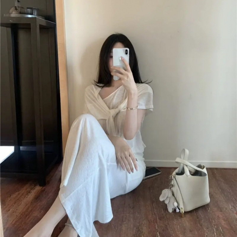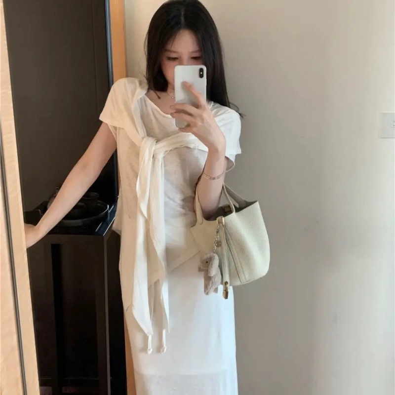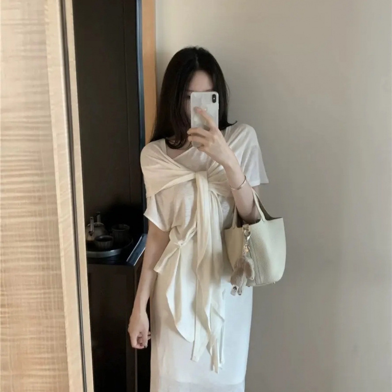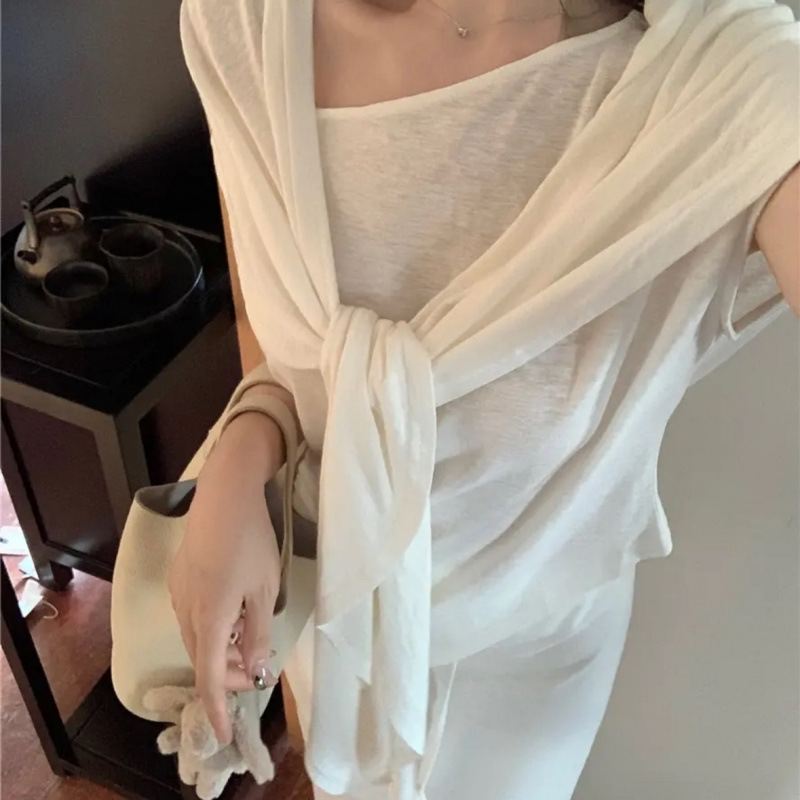 Льняной костюм 2025 года: футболка + юбка + шаль (тройка)
