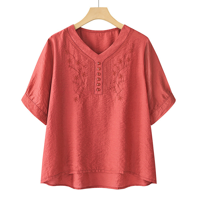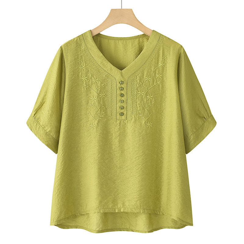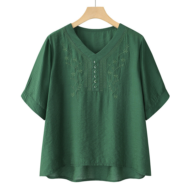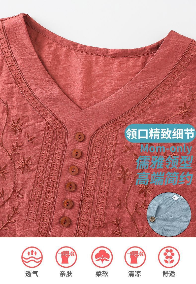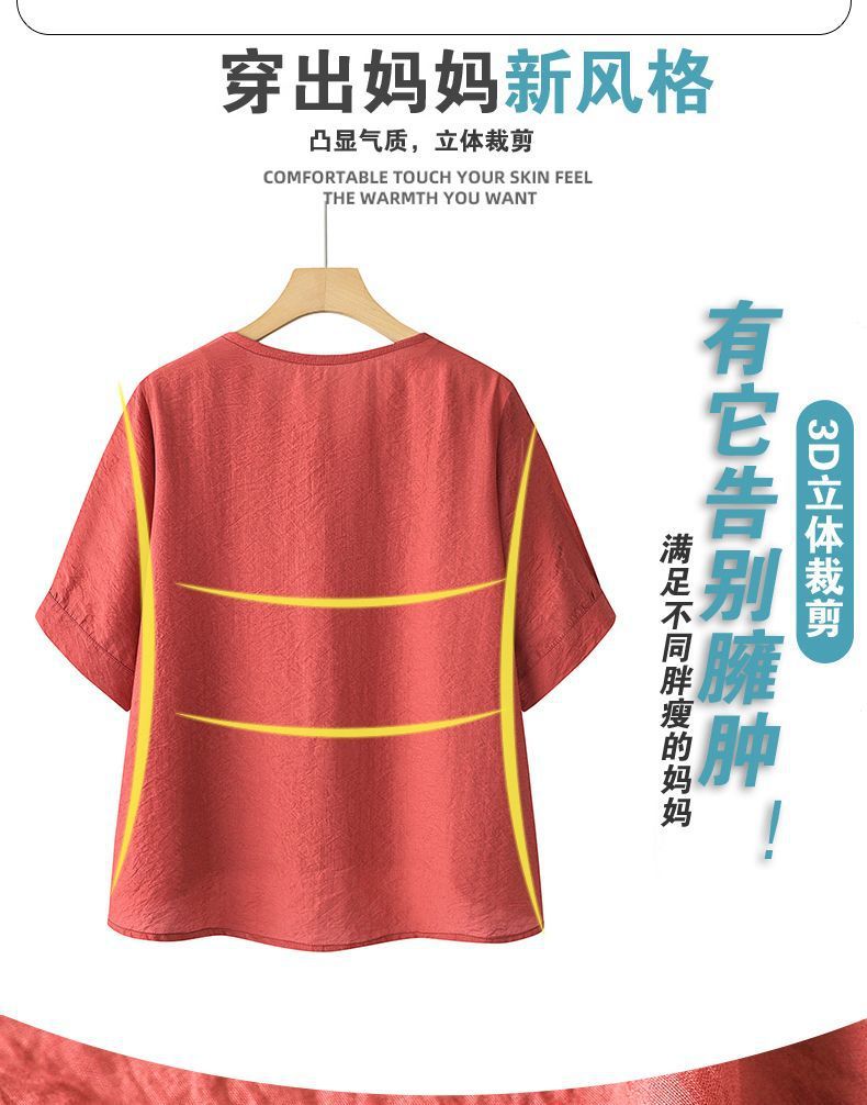2025 Новый модный костюм Женская футболка с вышивкой Одежда для женщин среднего и пожилого возраста Двухкомплектный набор