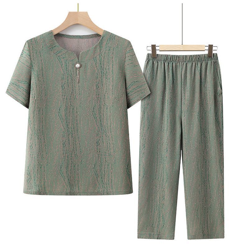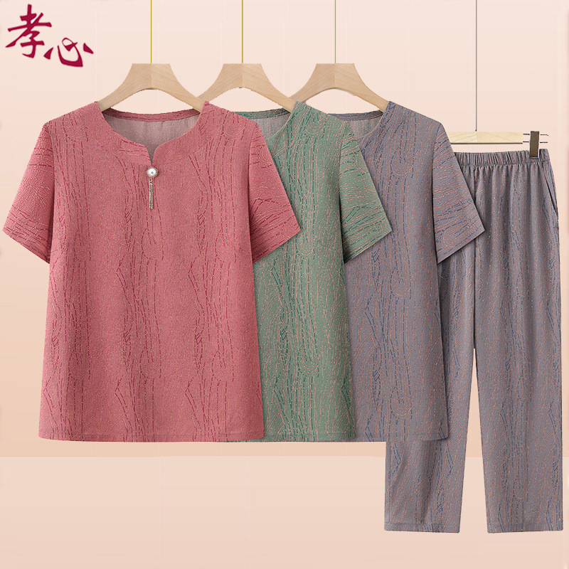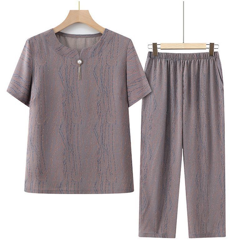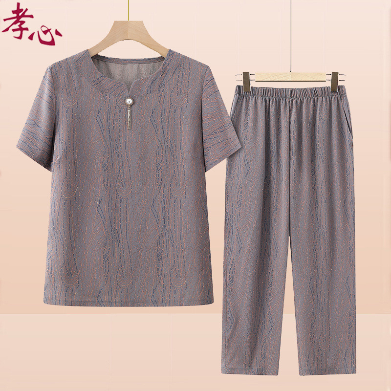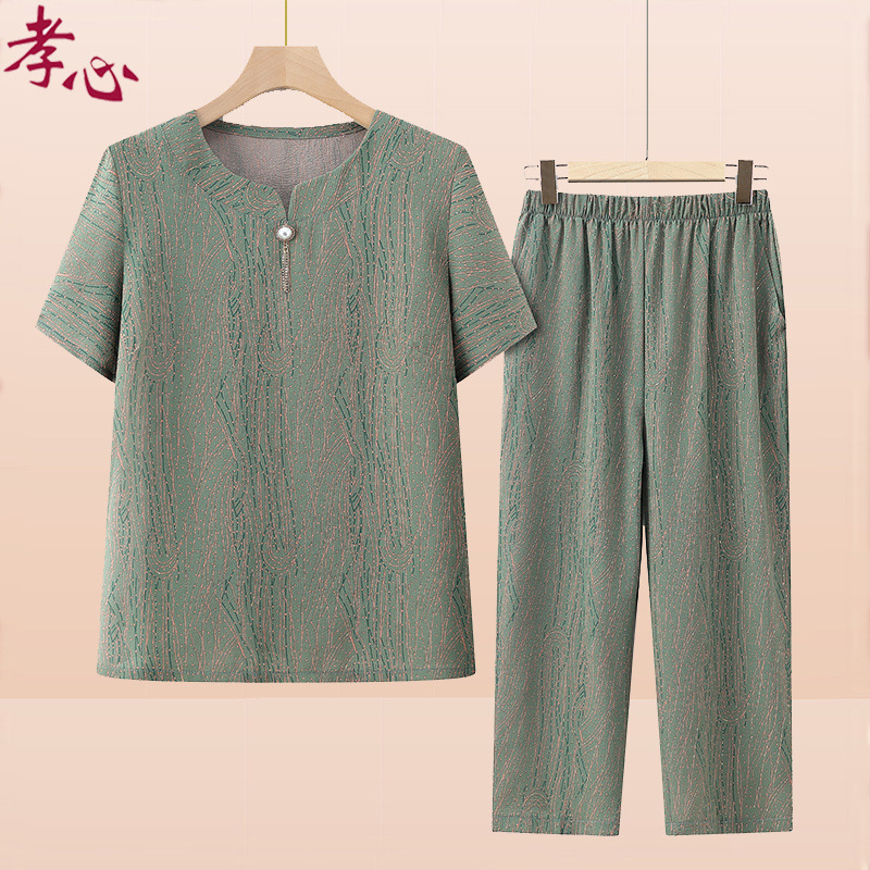 Летняя одежда из двух предметов для женщин среднего и пожилого возраста с короткими рукавами для мам, летние костюмы бабушек, повседневные старушки.