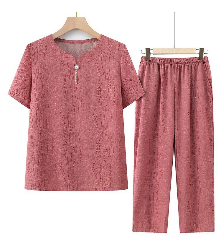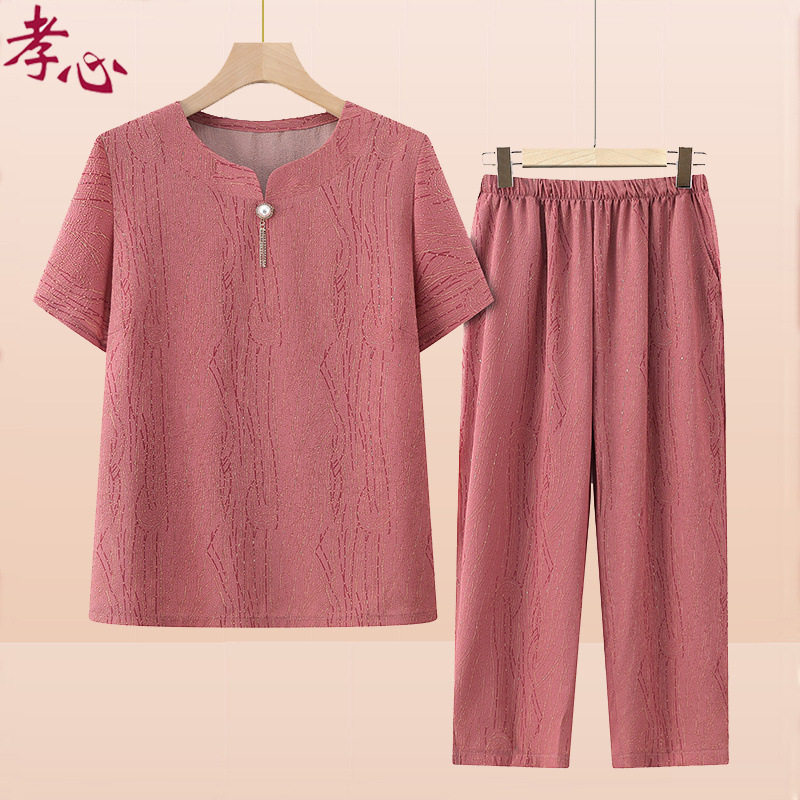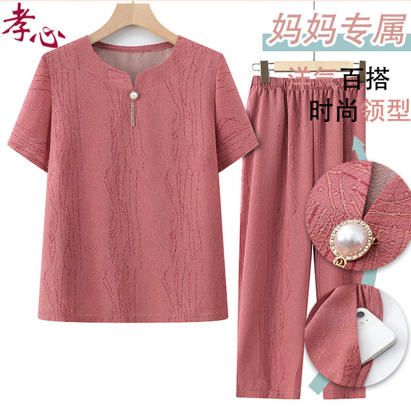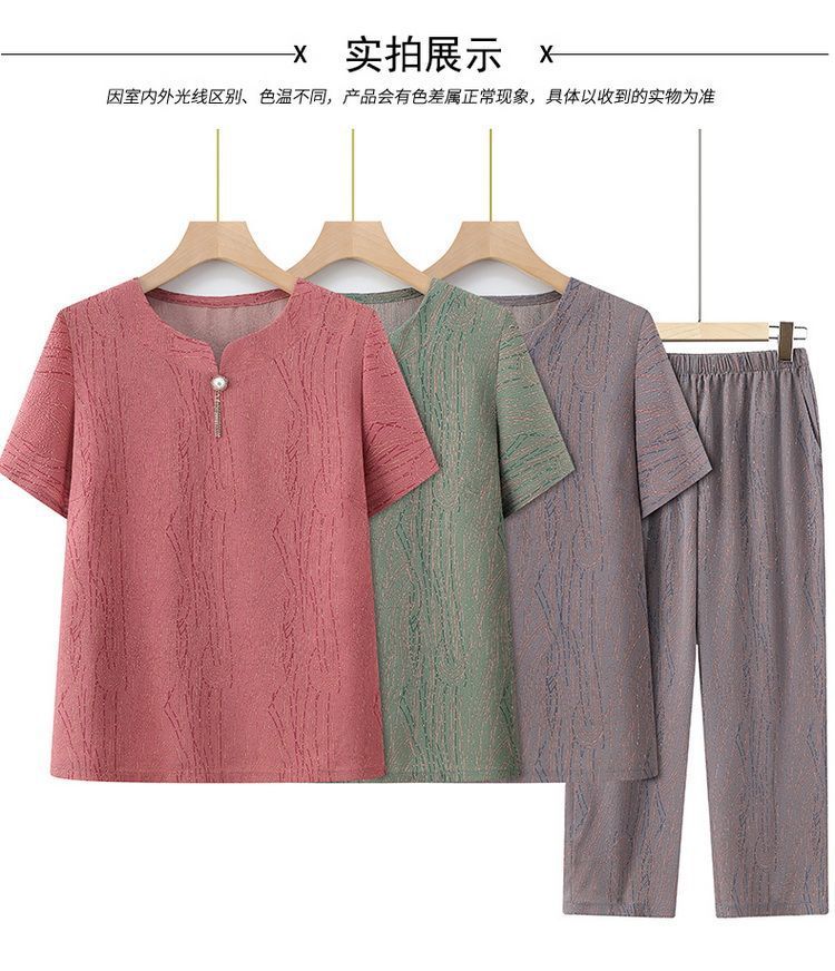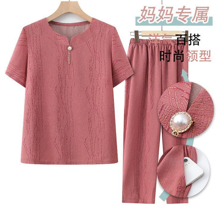 Летняя одежда из двух предметов для женщин среднего и пожилого возраста с короткими рукавами для мам, летние костюмы бабушек, повседневные старушки.