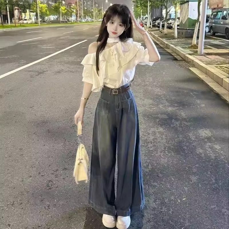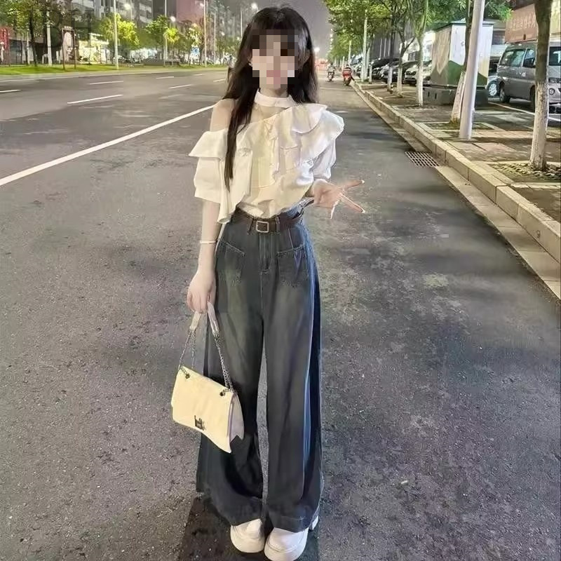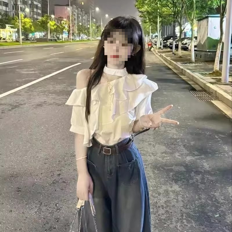 Женские топы с рюшами во французском стиле, элитные летние топы в стиле чистой страсти, сексуальные топы с косыми плечами и короткими рукавами.