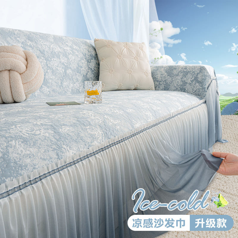 Синий ледяной шелк, прохладный летний коврик, подушка, новинка 2025 года, диванная подушка, полное одеяло, чехол для дивана, тканевое полотенце