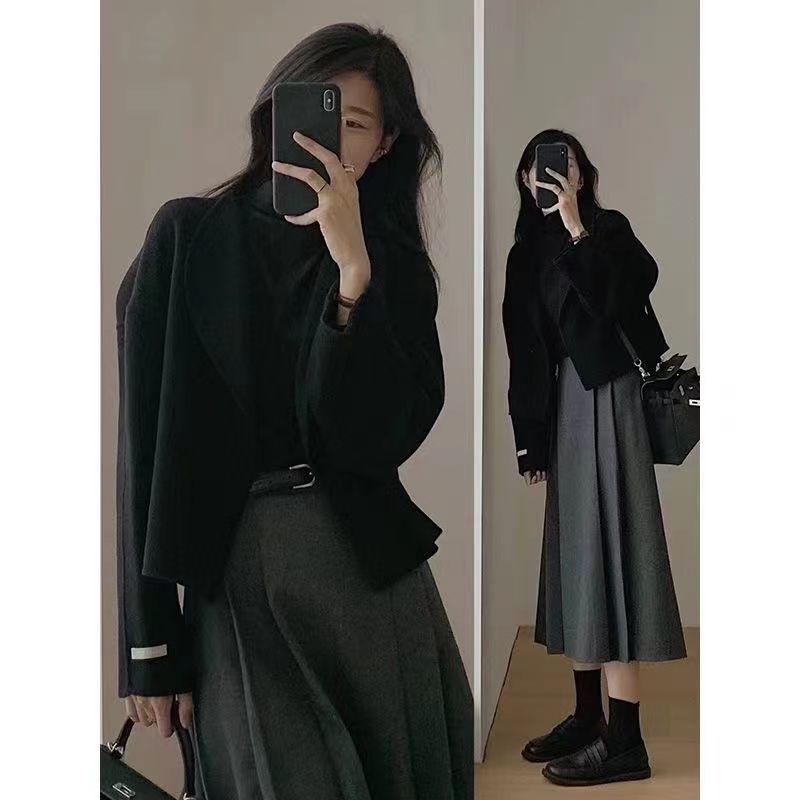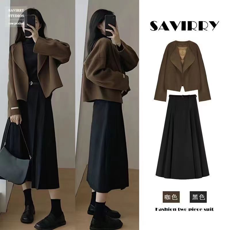 Новая женская одежда осень-зима 2025, простой стиль, нежная одежда, полный комплект с юбкой, маленький ароматный молочный костюм