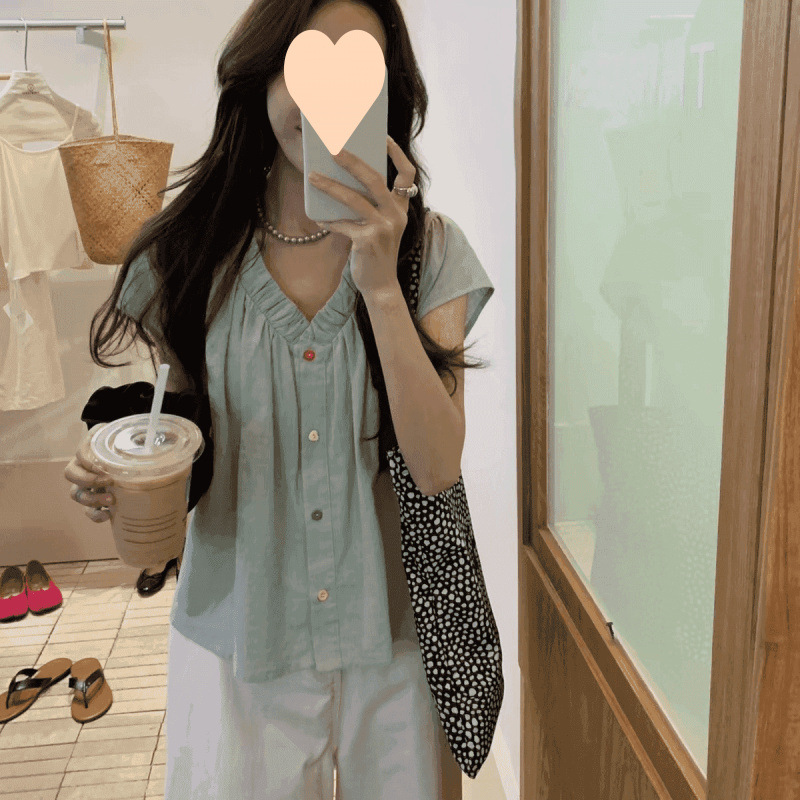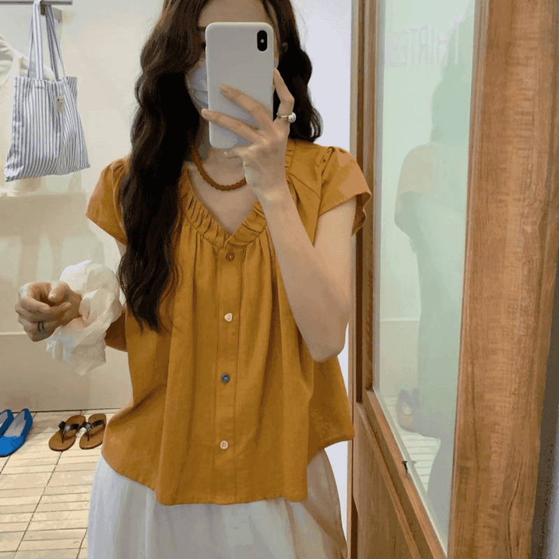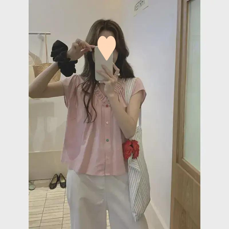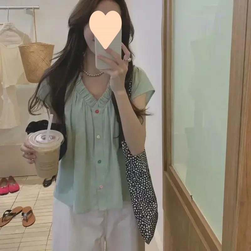 Допаминовая карамельная рубашка с маленькими летящими рукавами для женщин, летняя короткая стильная миниатюрная нежная элегантная шикарная маленькая рубашка, летний топ