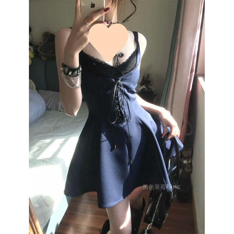 Корейское сладкое и пряное платье на бретельках с ремешками, многослойная короткая юбка на кружевных подтяжках на талии, комплект из двух предметов
