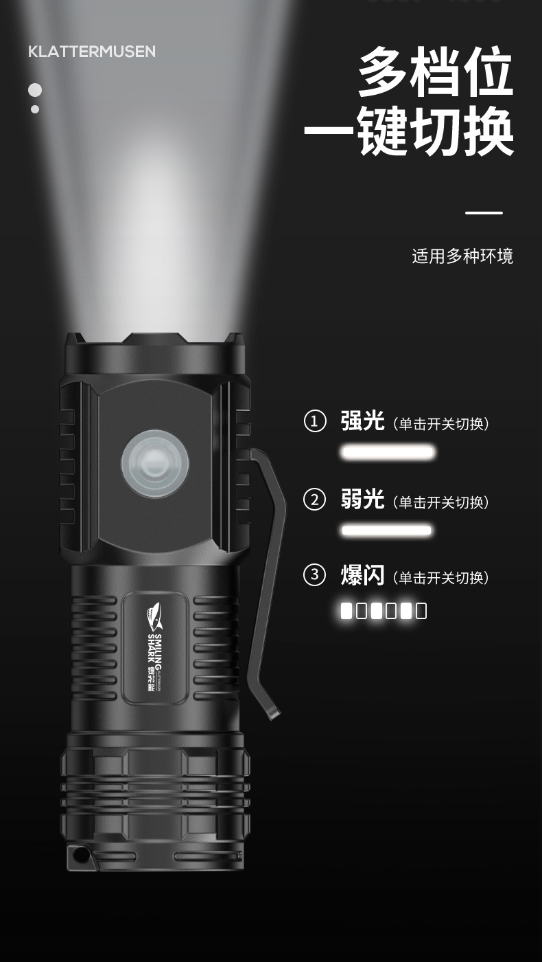 Уличный мини-фонарик с трехскоростной регулировкой, портативный маленький фонарик с фиксированным фокусом и дизайном зажима для ручки
