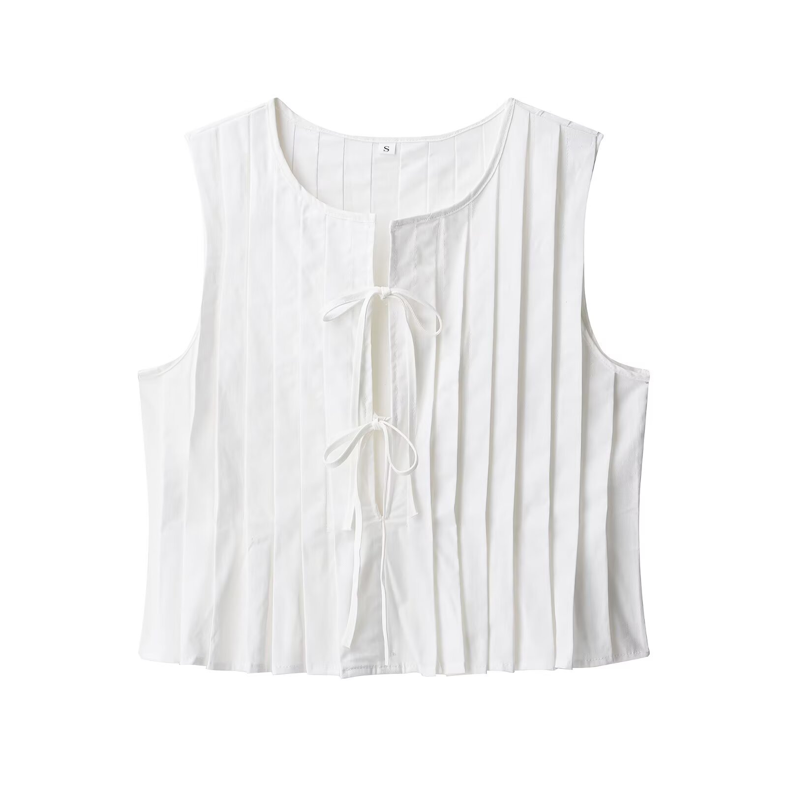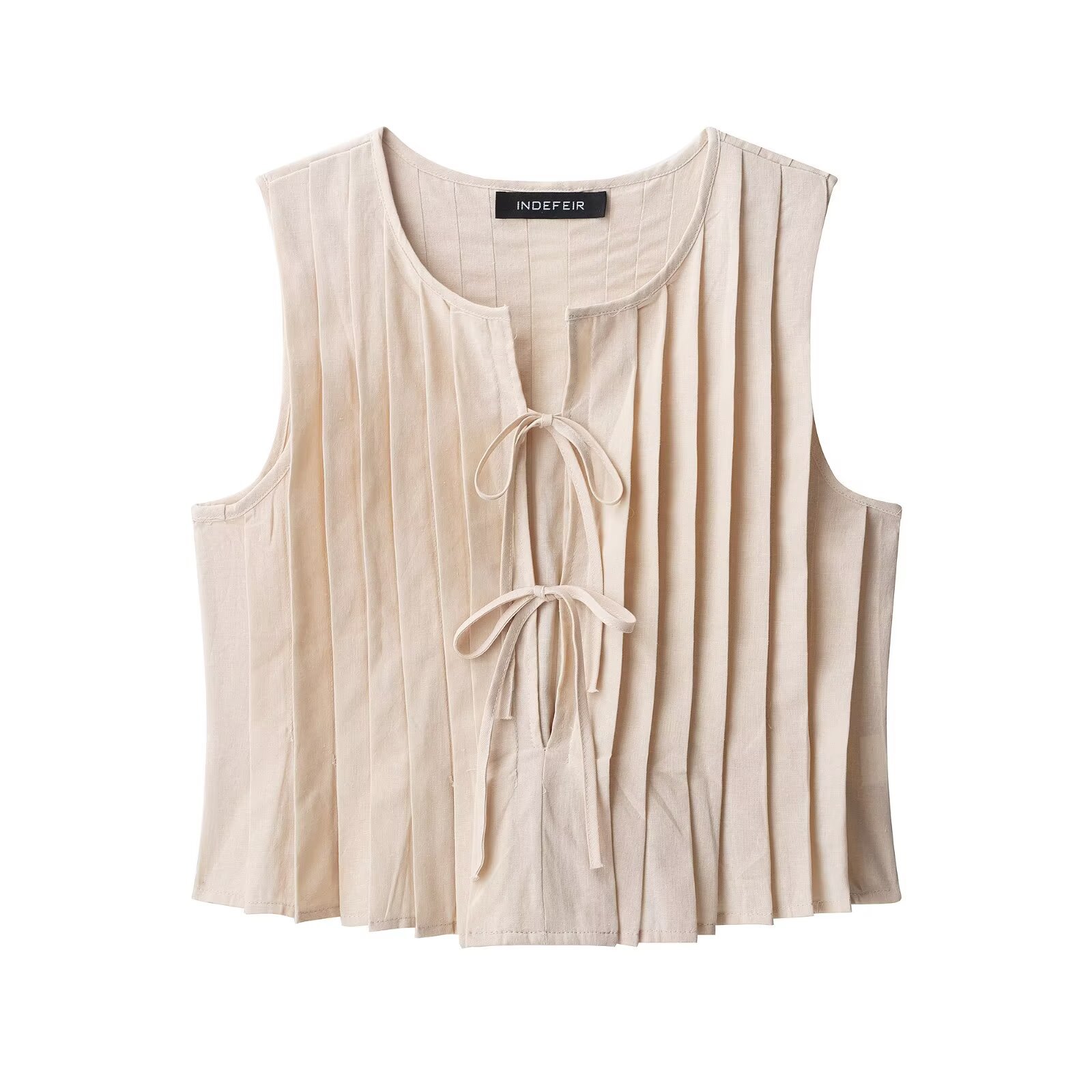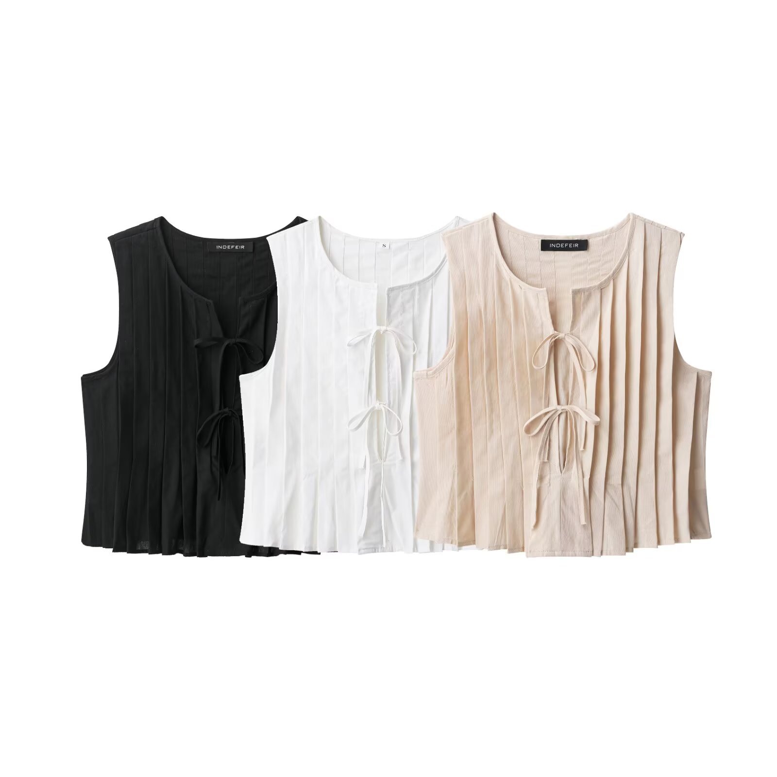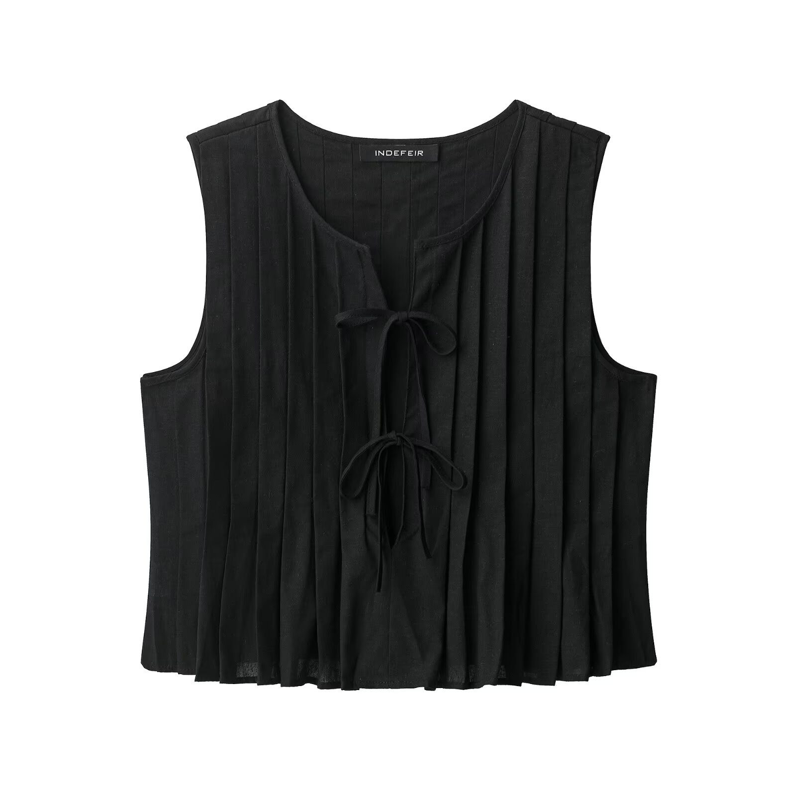 Женский жилет без рукавов с круглым вырезом, шнуровкой и складками в стиле европейской и американской уличной моды, лето 2025, внешняя торговля H1240720