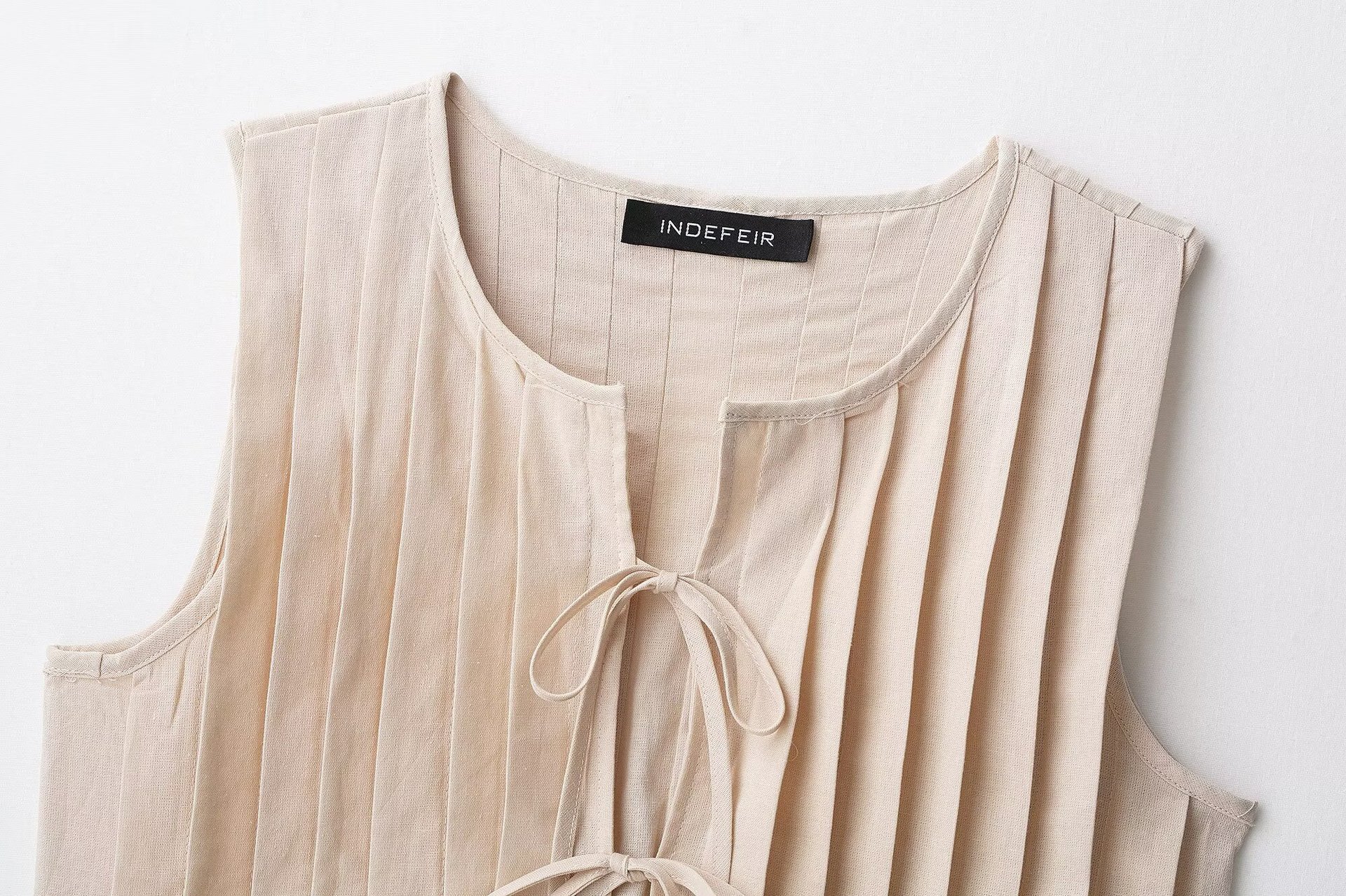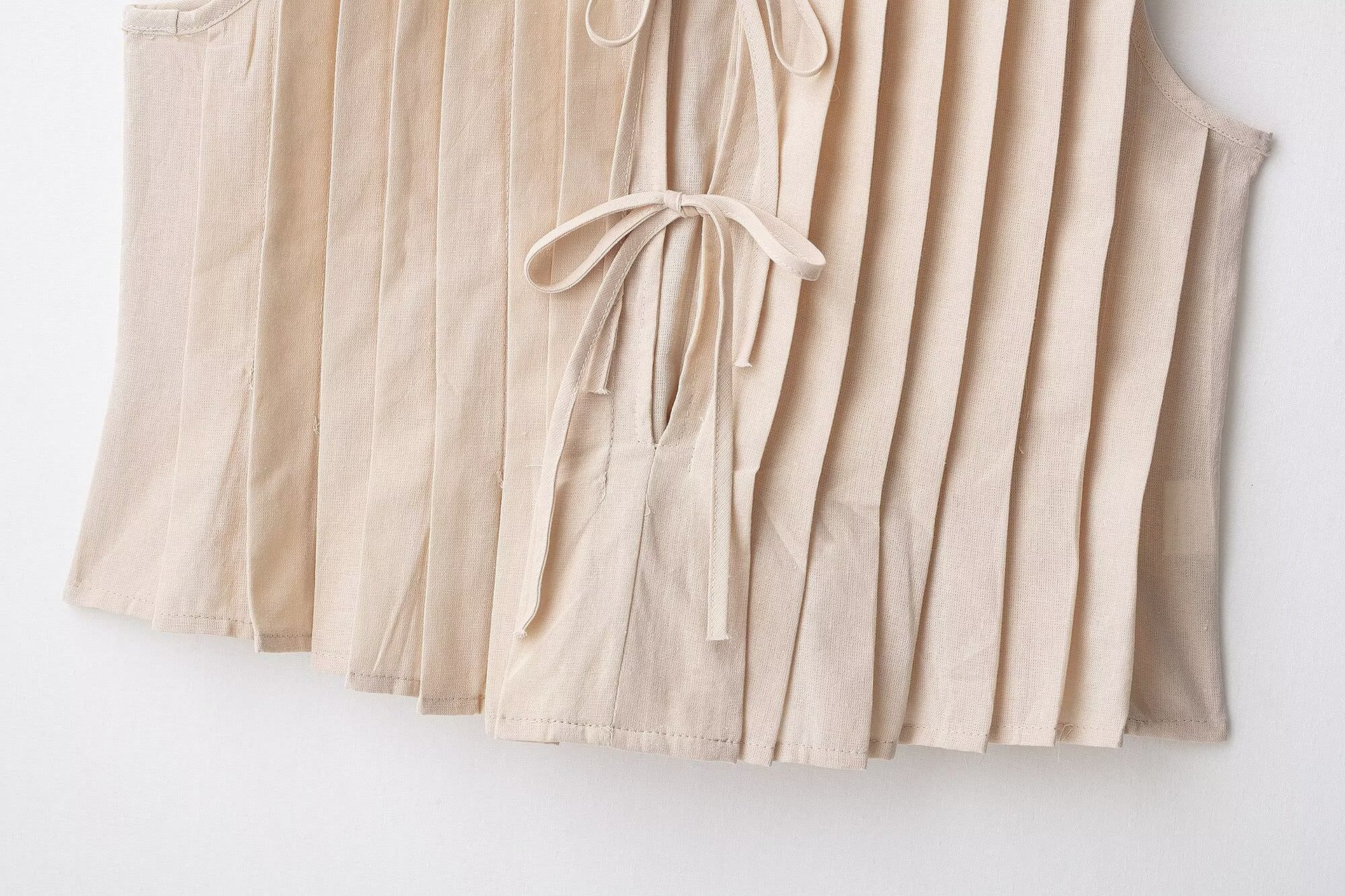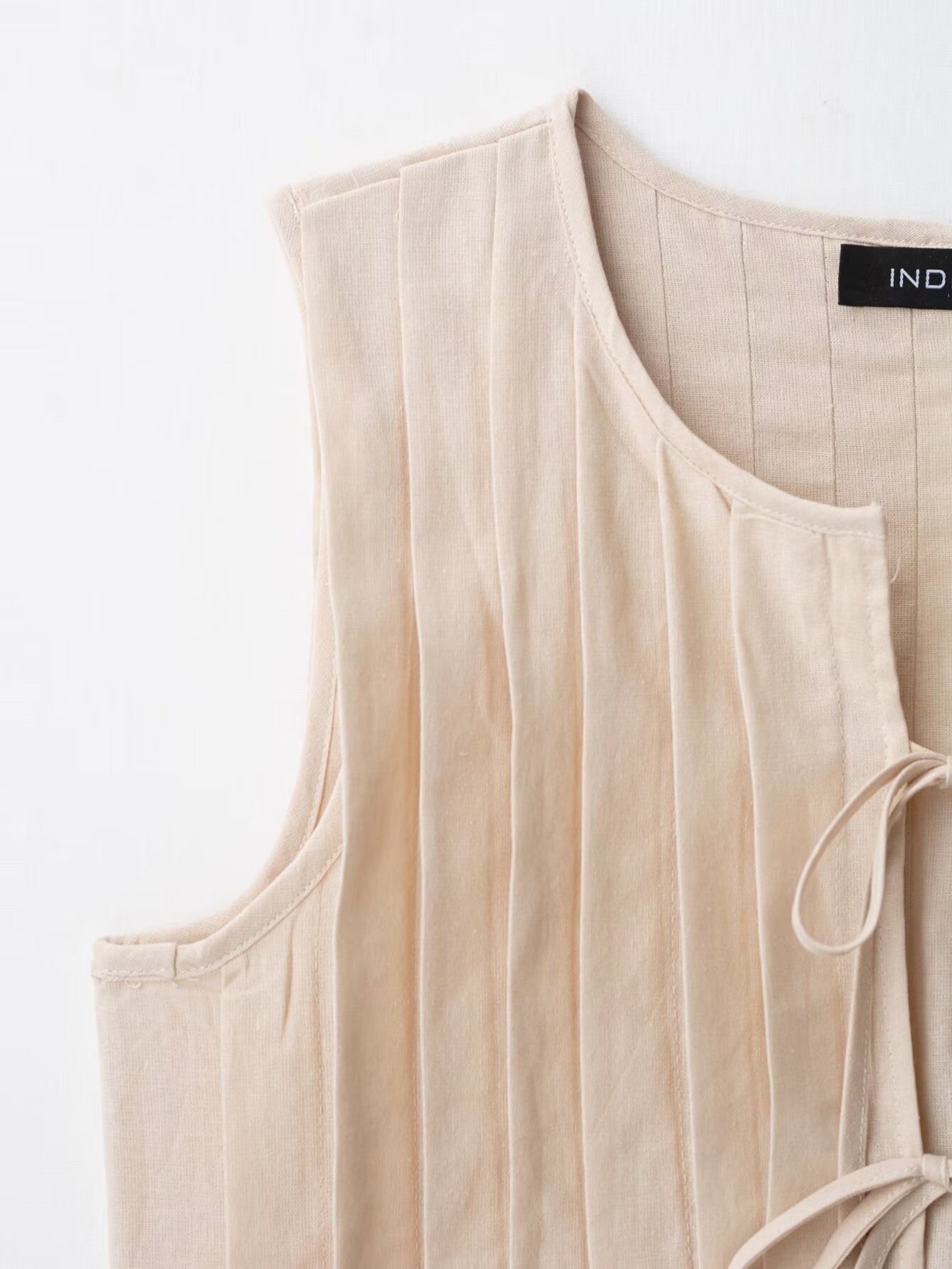Женский жилет без рукавов с круглым вырезом, шнуровкой и складками в стиле европейской и американской уличной моды, лето 2025, внешняя торговля H1240720