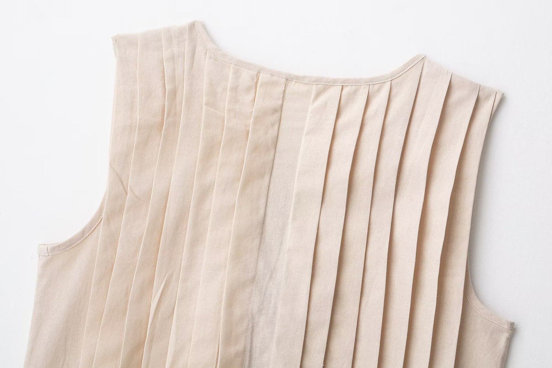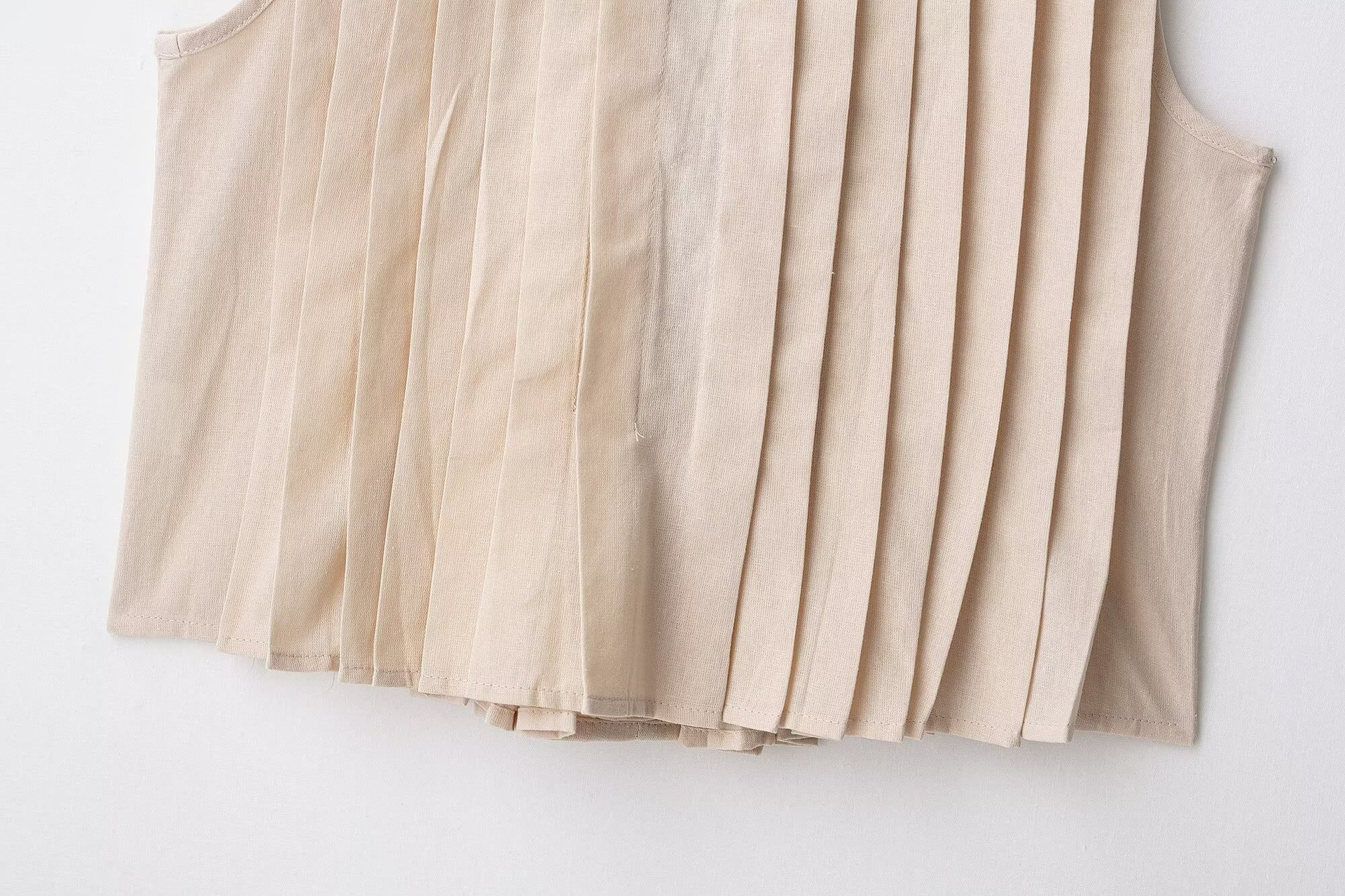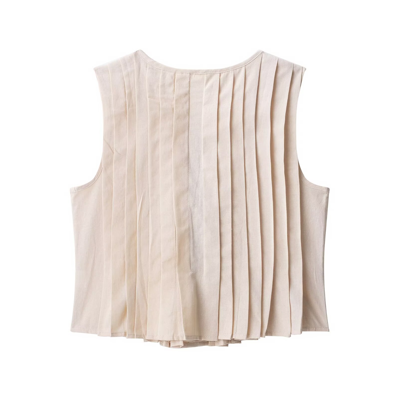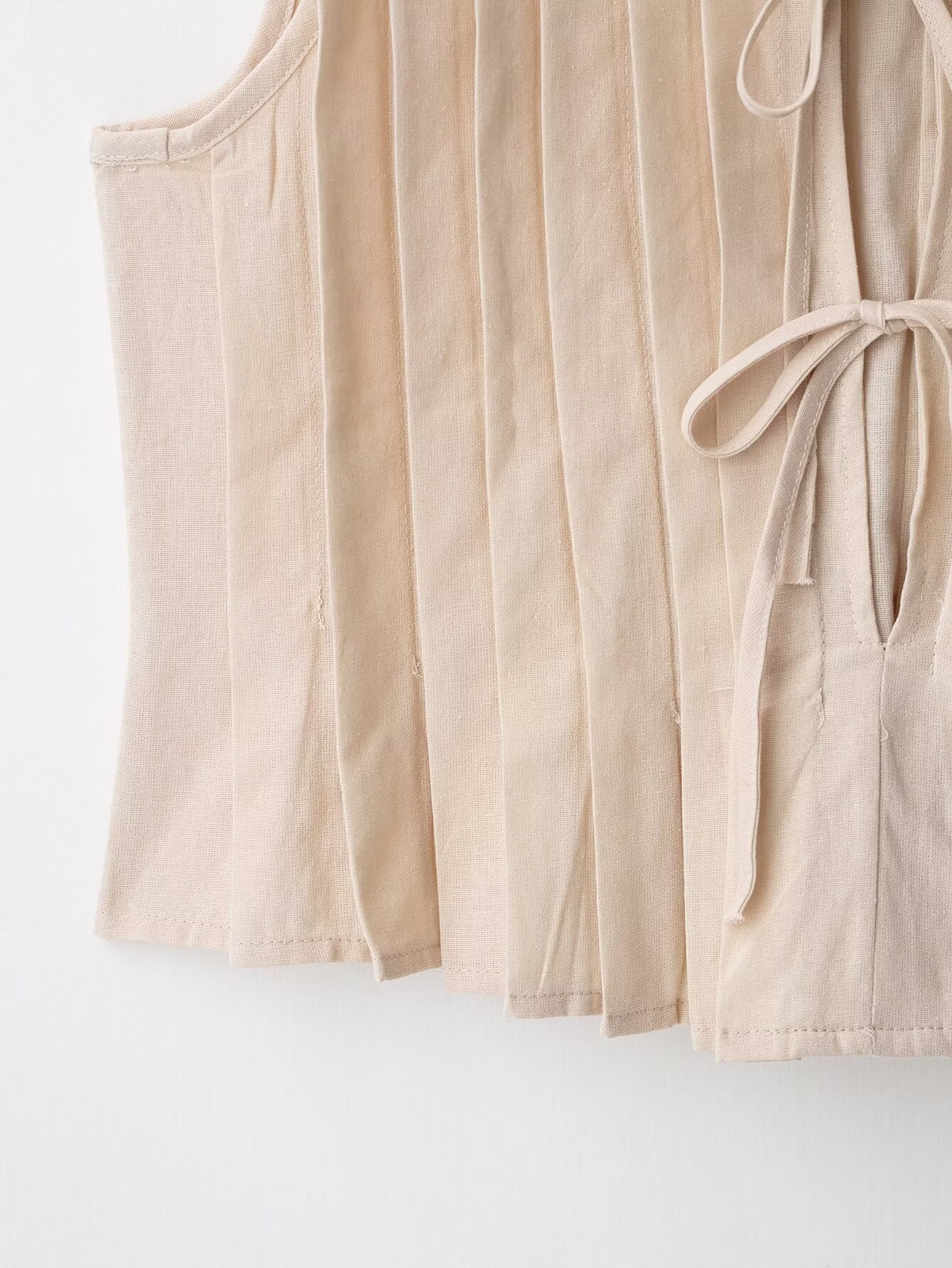 Женский жилет без рукавов с круглым вырезом, шнуровкой и складками в стиле европейской и американской уличной моды, лето 2025, внешняя торговля H1240720