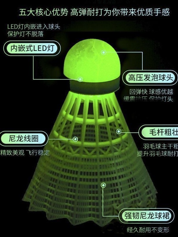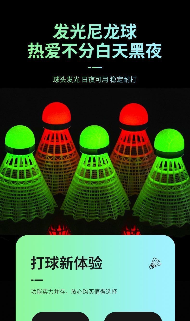 Светящийся ветрозащитный светящийся мяч для бадминтона третьего поколения, супер прочный и небьющийся, уличный флуоресцентный мяч с подсветкой, пластиковый нейлоновый мяч оптом