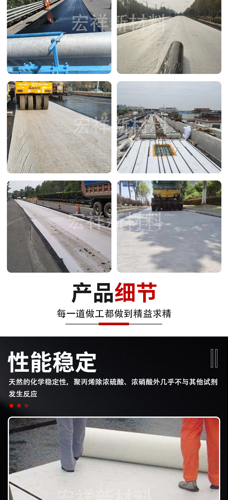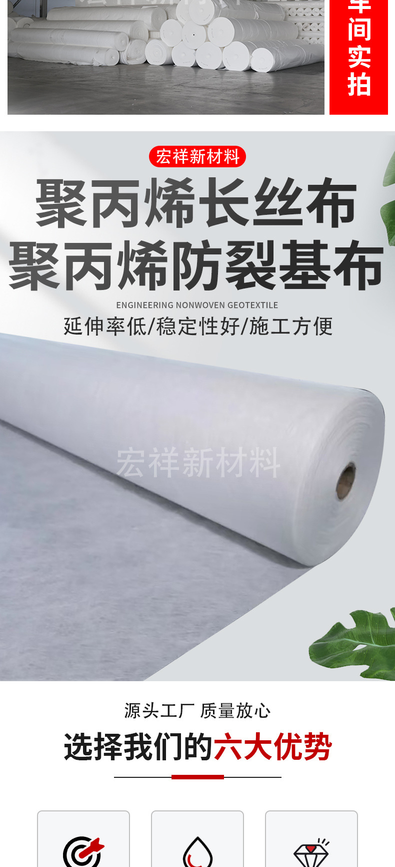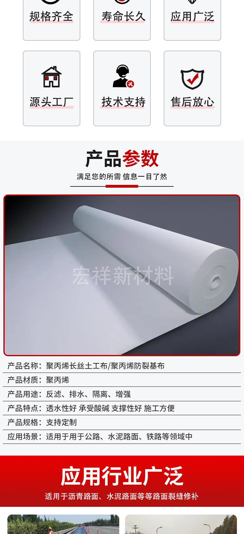 Ткань из полипропиленового волокна Полипропиленовая основная ткань против растрескивания Ткань для обслуживания асфальтового покрытия шоссе Защита склонов от просачивания Водонепроницаемая ткань из волокна