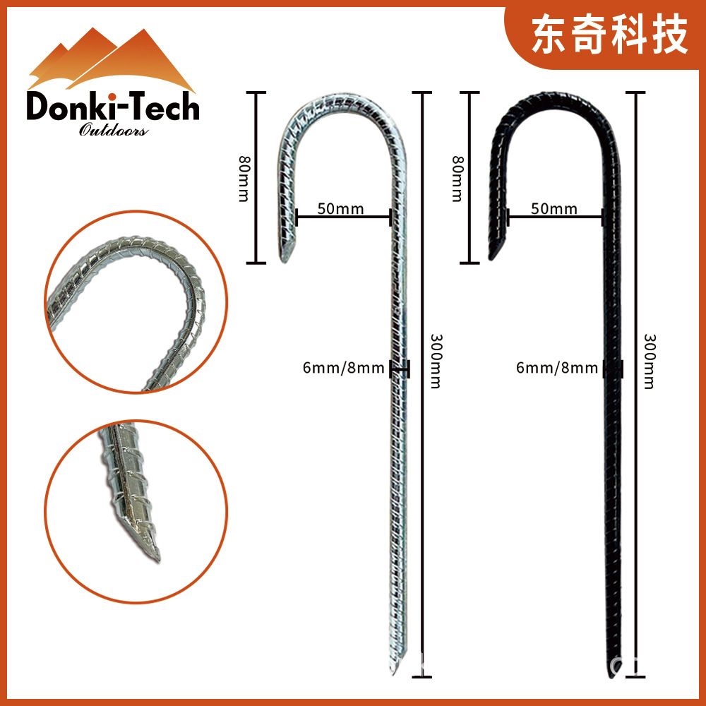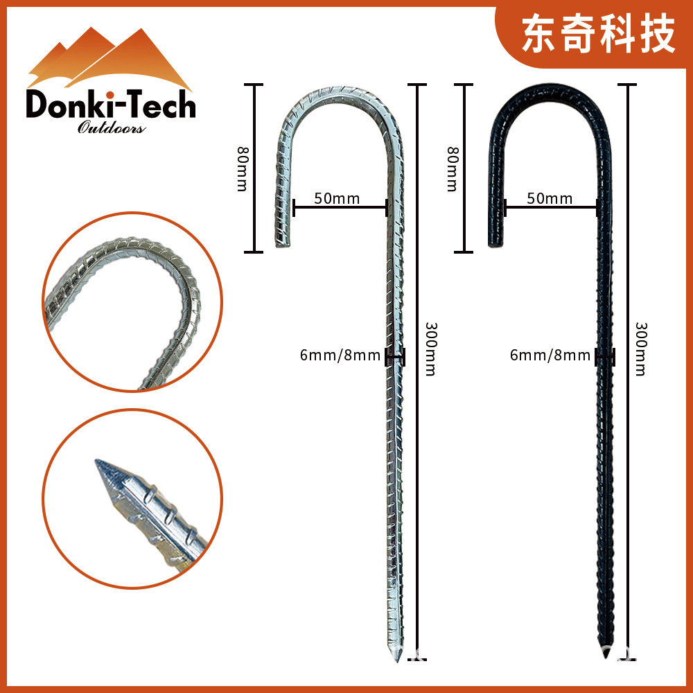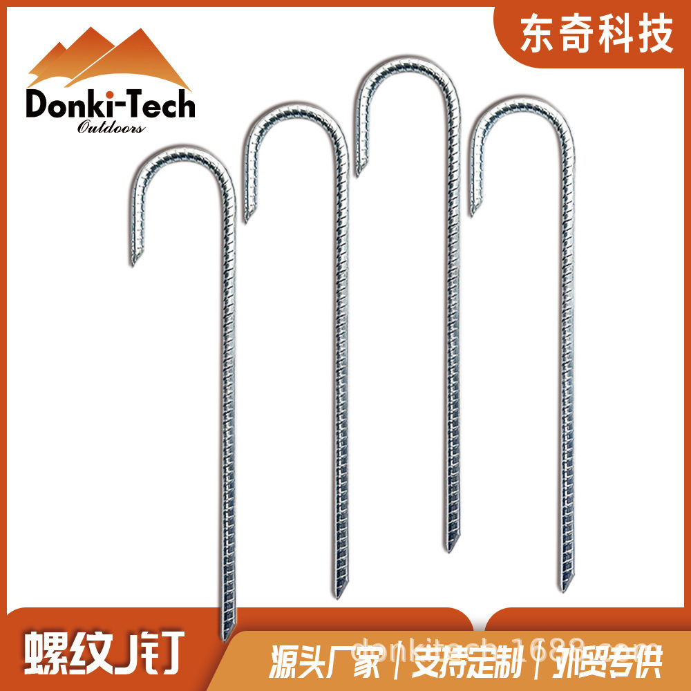 Стальные гвозди с резьбой J-типа для наружного использования, сверхпрочные гвозди для палаток M6 M8, стальные J-образные гвозди, стальные гвозди с резьбой, упаковка из 6 штук.