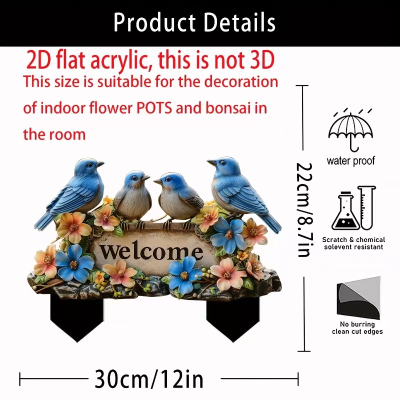 Рождественская синяя эльфья птица из акрила в горшке, украшение для окна автомобиля, напольная заглушка, трансграничная приветственная табличка