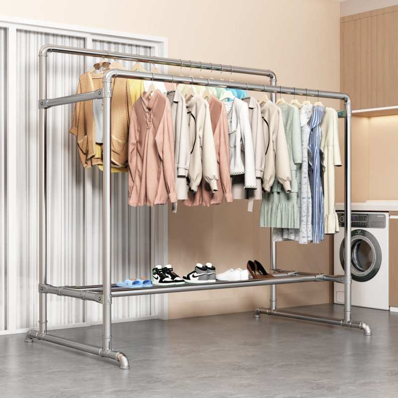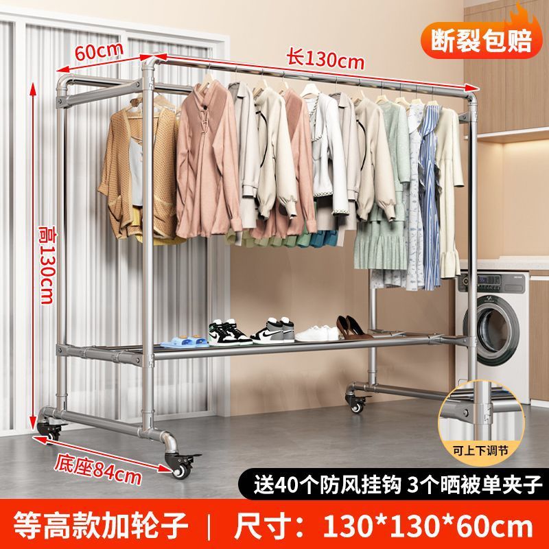 Сушилка для одежды из оцинкованной стальной трубы, напольная вертикальная простая сушилка для одежды из водопроводной трубы, балконная уличная сушилка для одежды с двумя стойками и колесами