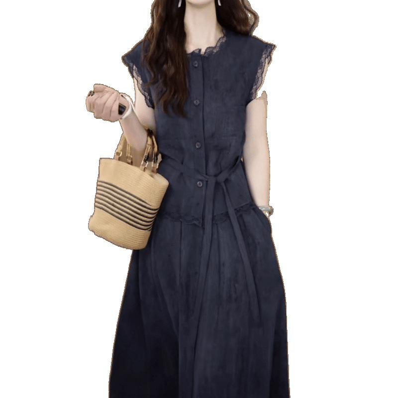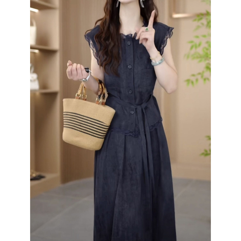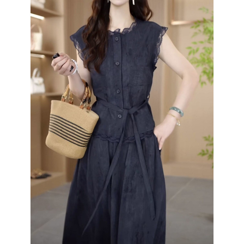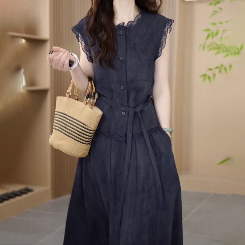 Двухслойное платье из шифона с эффектом льда для женщин, скрывающее живот, летняя новинка 2025 года, модный костюм с юбкой для стройнящего эффекта, большие размеры.