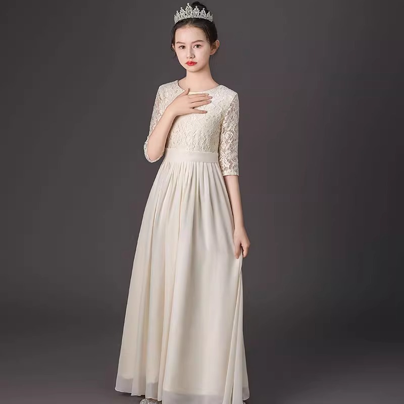 Высококачественное длинное черное сценическое платье для девочек до пола, платье для выступления на скрипке guzheng, кружевное платье