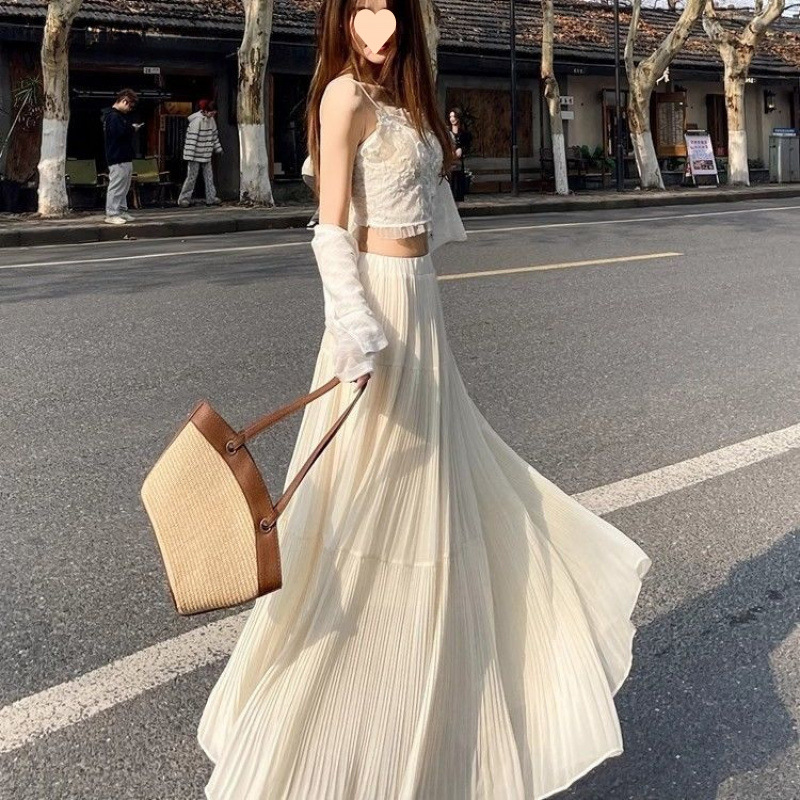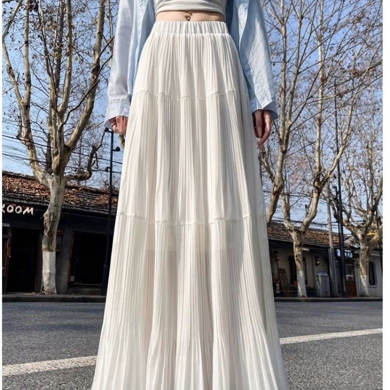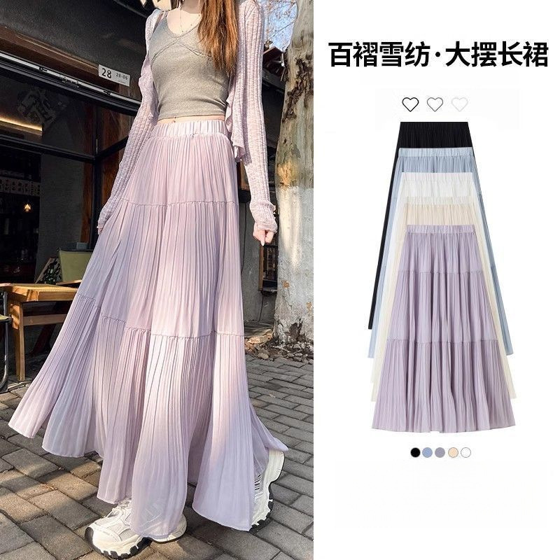 Фиолетовая плиссированная юбка для женщин, весна-лето 2025, новая, высокая талия, утягивающая, закрывающая бедра, с широким подолом, длинная плиссированная юбка
