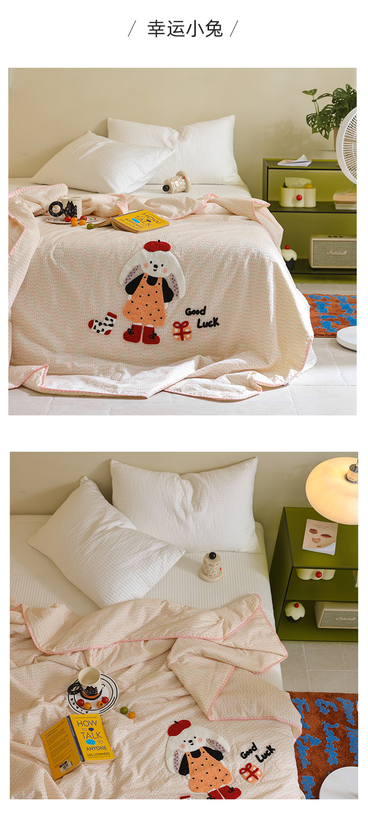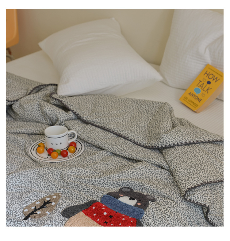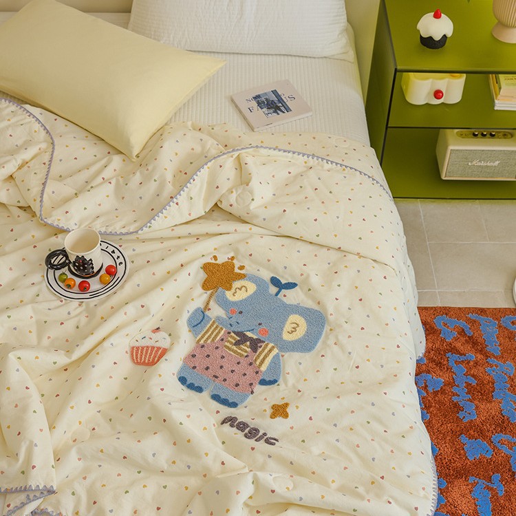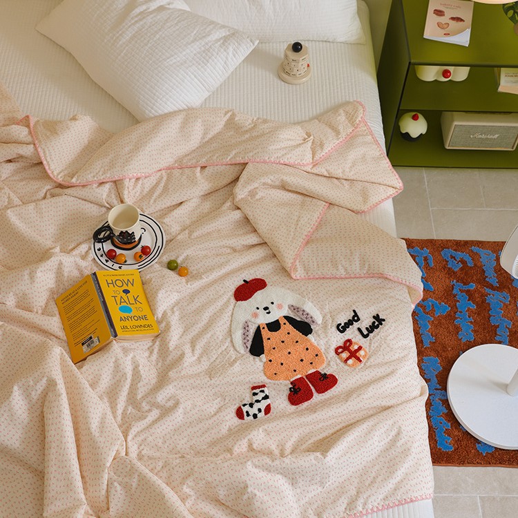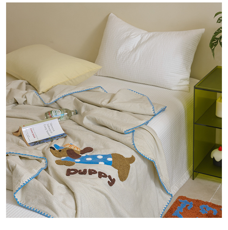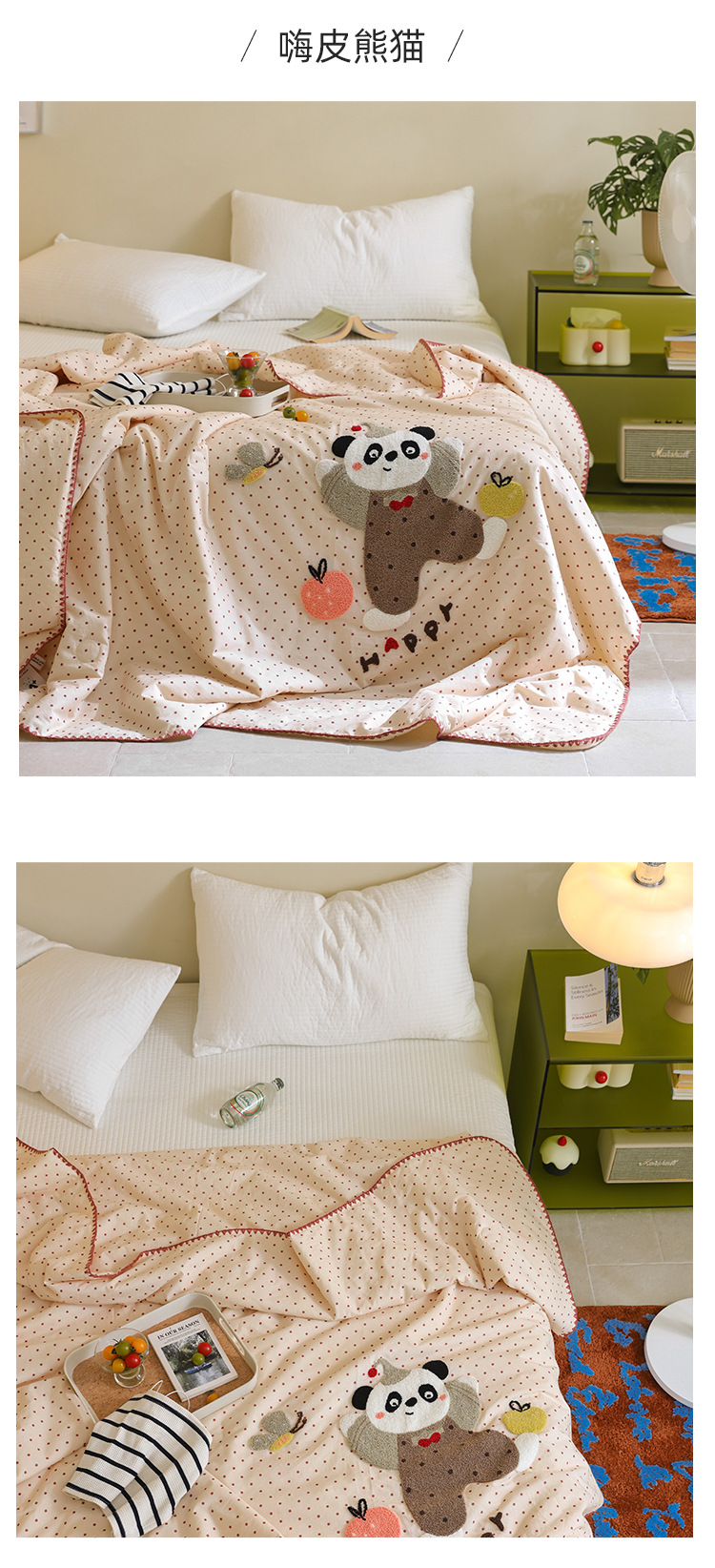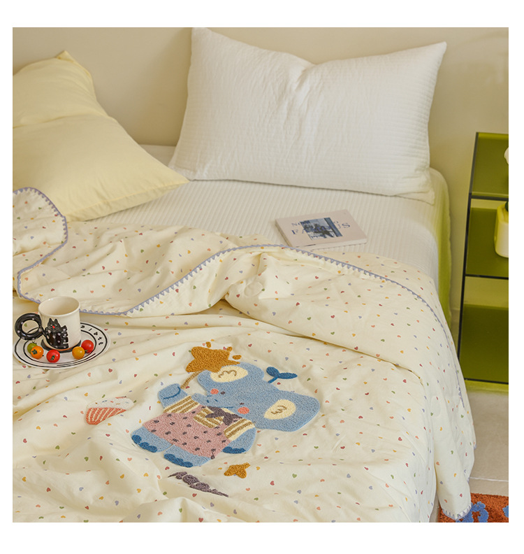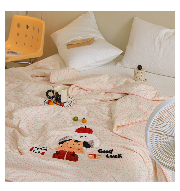 Мягкое и милое полотенце с вышивкой, летнее одеяло из 20% соевого хлопка, двухслойное одеяло из чистого хлопка, тонкое одеяло, можно стирать и стирать в машине.
