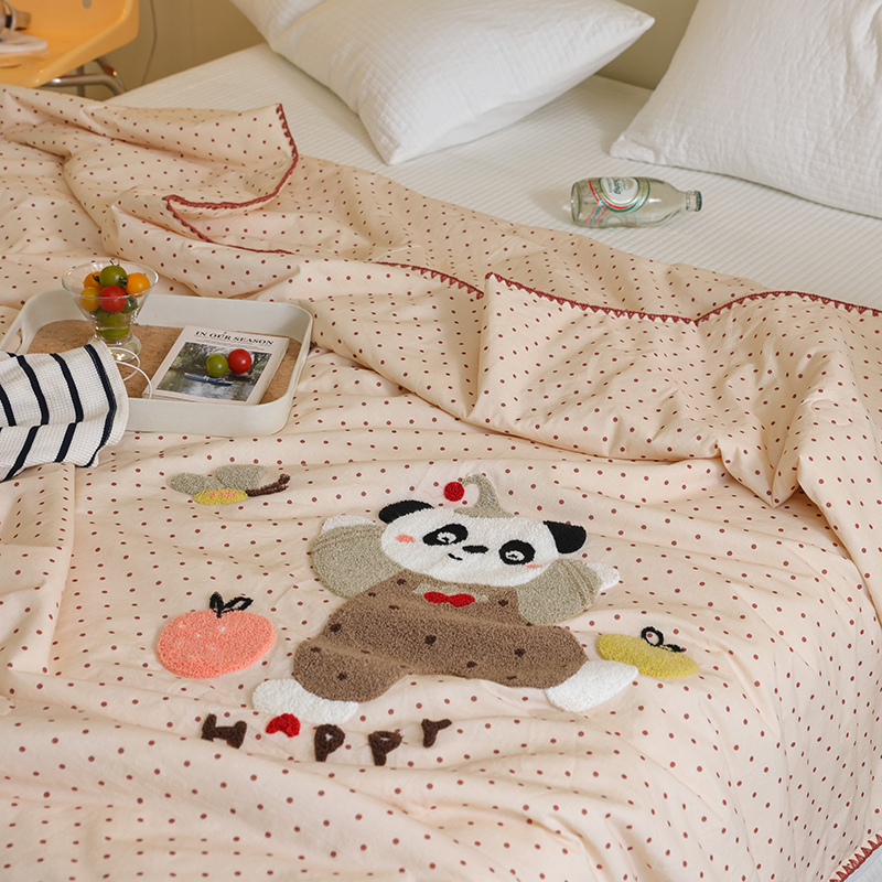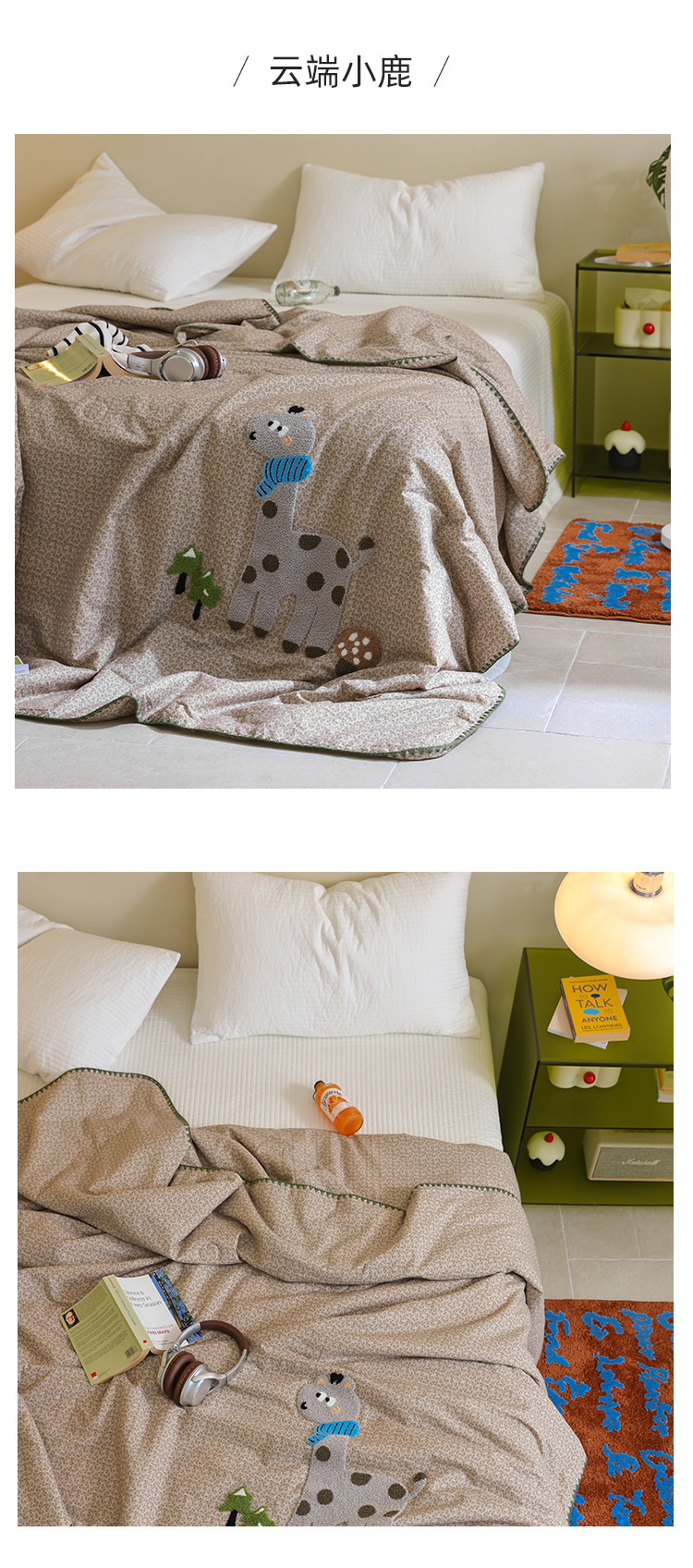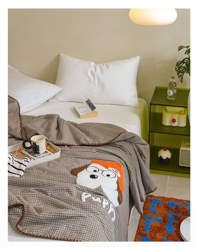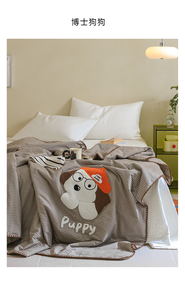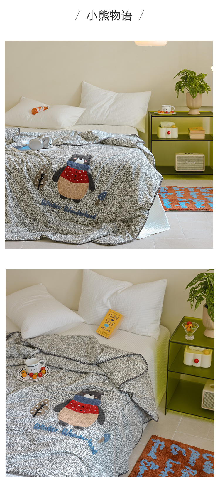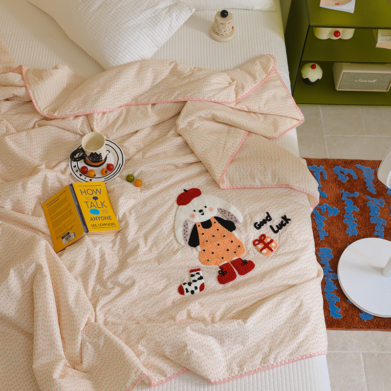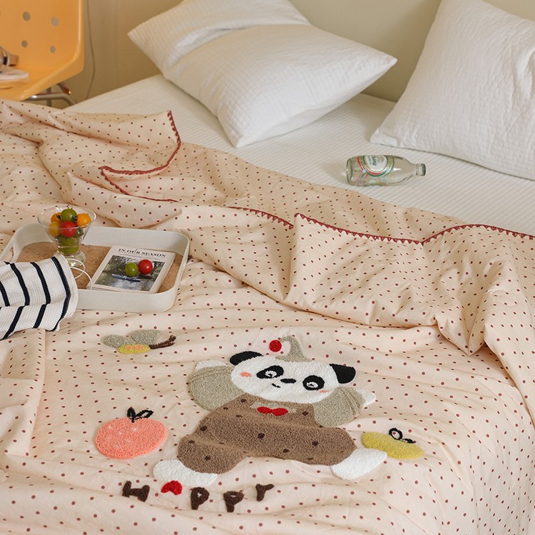 Мягкое и милое полотенце с вышивкой, летнее одеяло из 20% соевого хлопка, двухслойное одеяло из чистого хлопка, тонкое одеяло, можно стирать и стирать в машине.