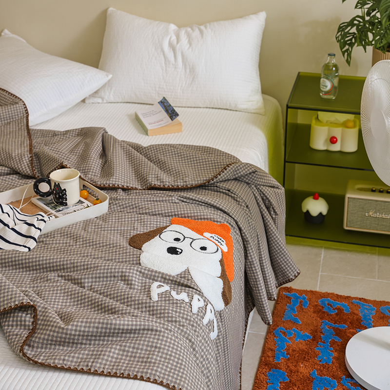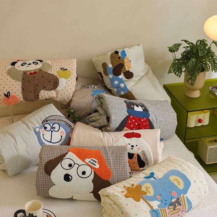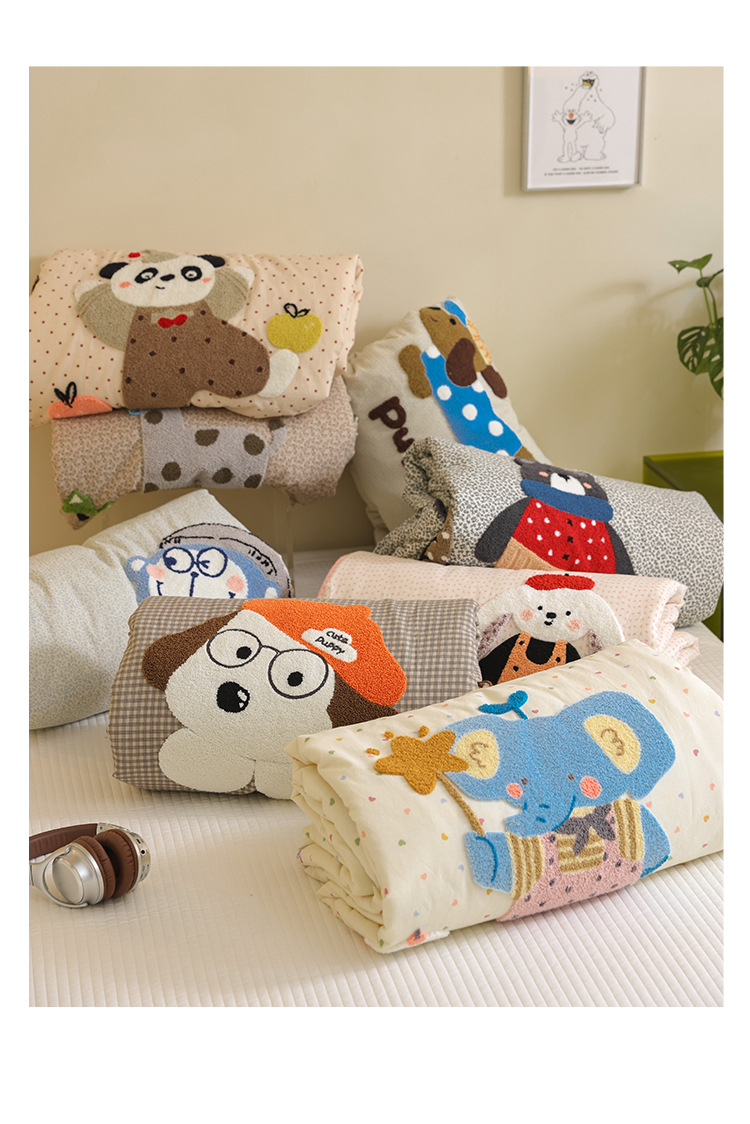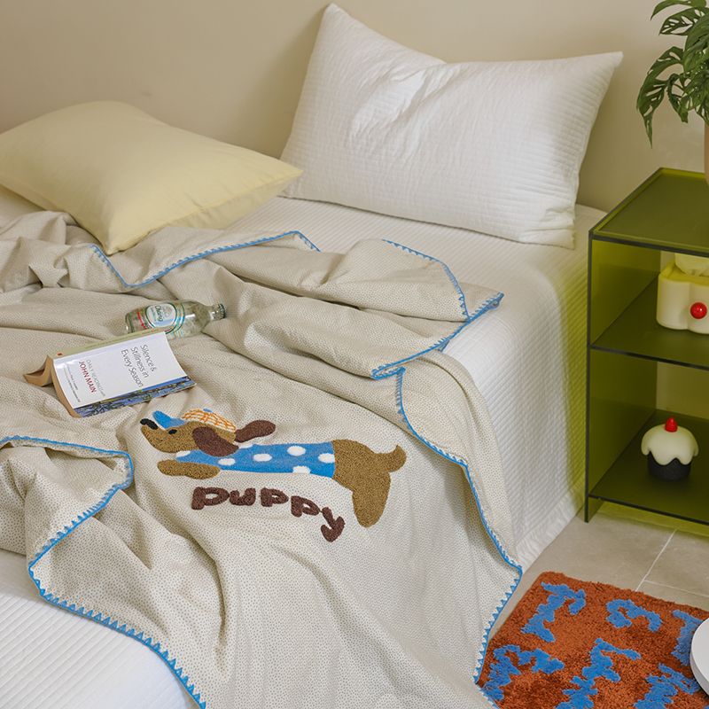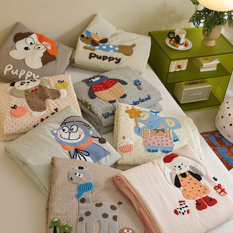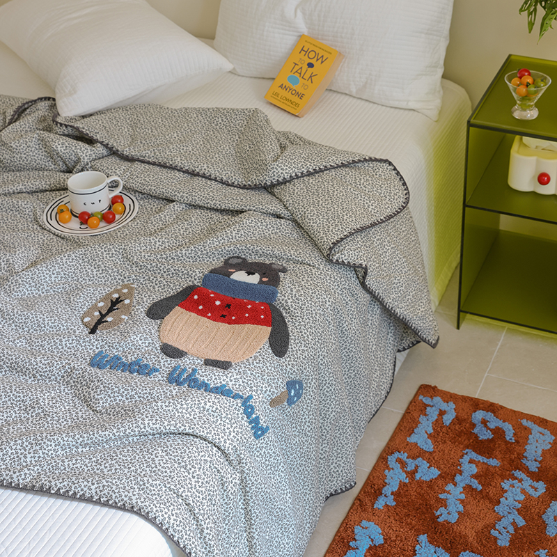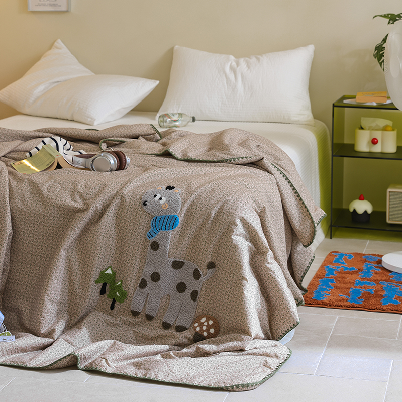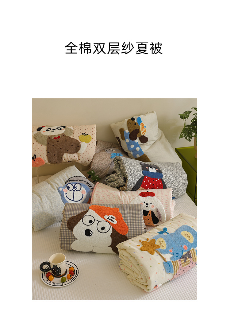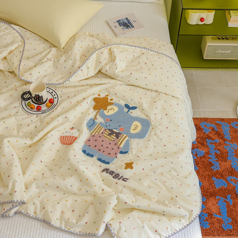 Мягкое и милое полотенце с вышивкой, летнее одеяло из 20% соевого хлопка, двухслойное одеяло из чистого хлопка, тонкое одеяло, можно стирать и стирать в машине.