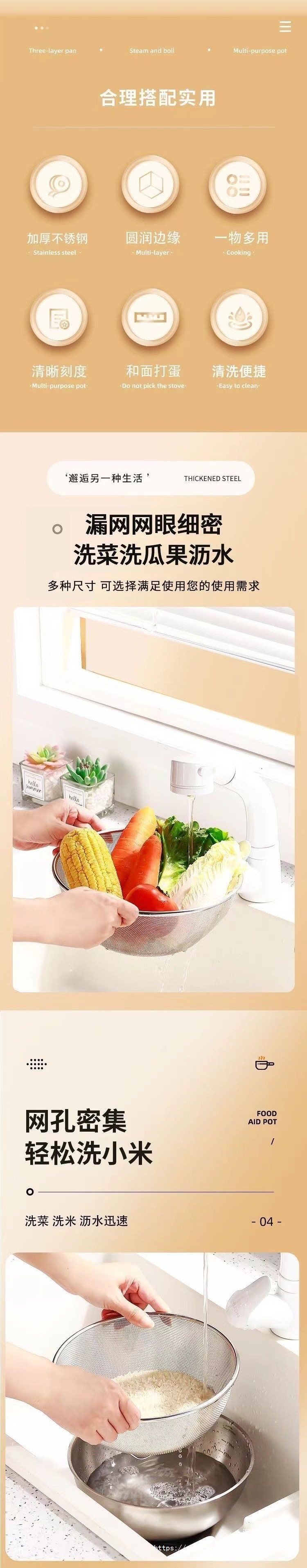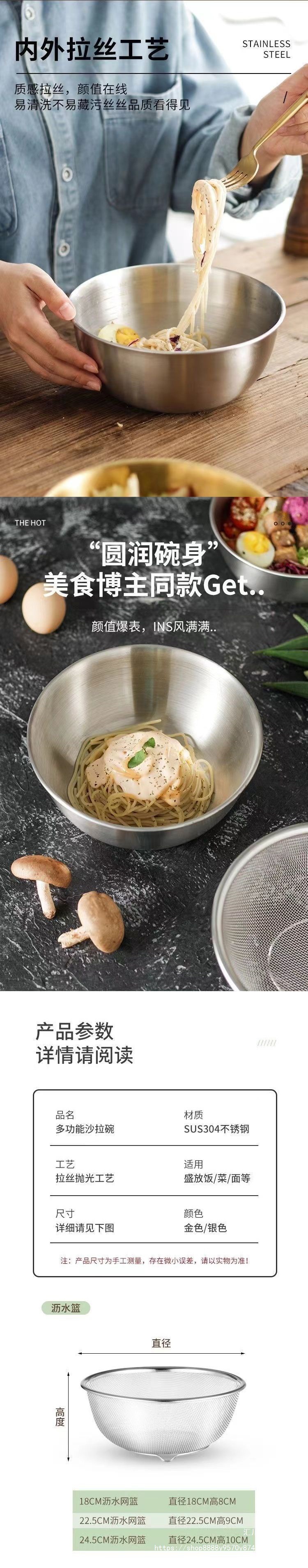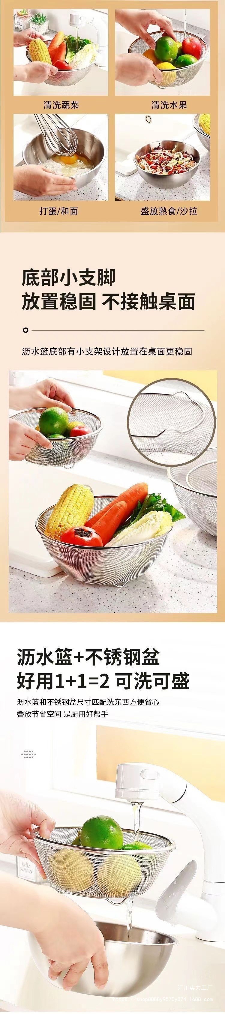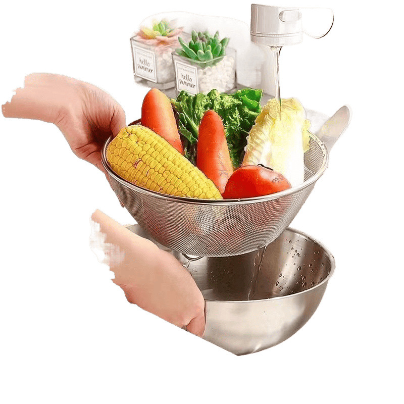 Двухслойный набор из нержавеющей стали 304 для домашней кухни, мелкоячеистое сито для слива овощей и мытья риса.