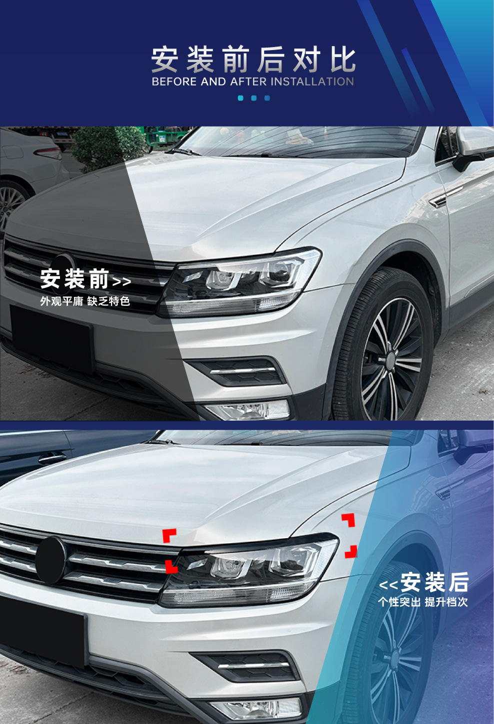 Подходит для Volkswagen Tiguan MK2 2017-2020, наклейки на фары, брови, автомобильные наклейки, внешние трансграничные детали для модификации