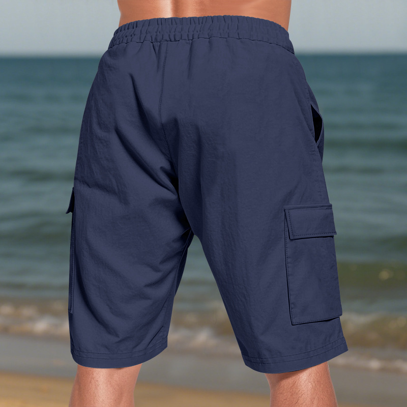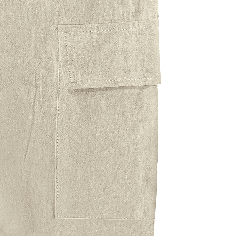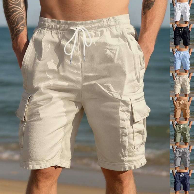 Трансграничная европейская и американская мужская пляжная приятная для кожи дышащая льняная свободная рабочая одежда с несколькими карманами для приседаний и бега повседневные шорты для мужчин